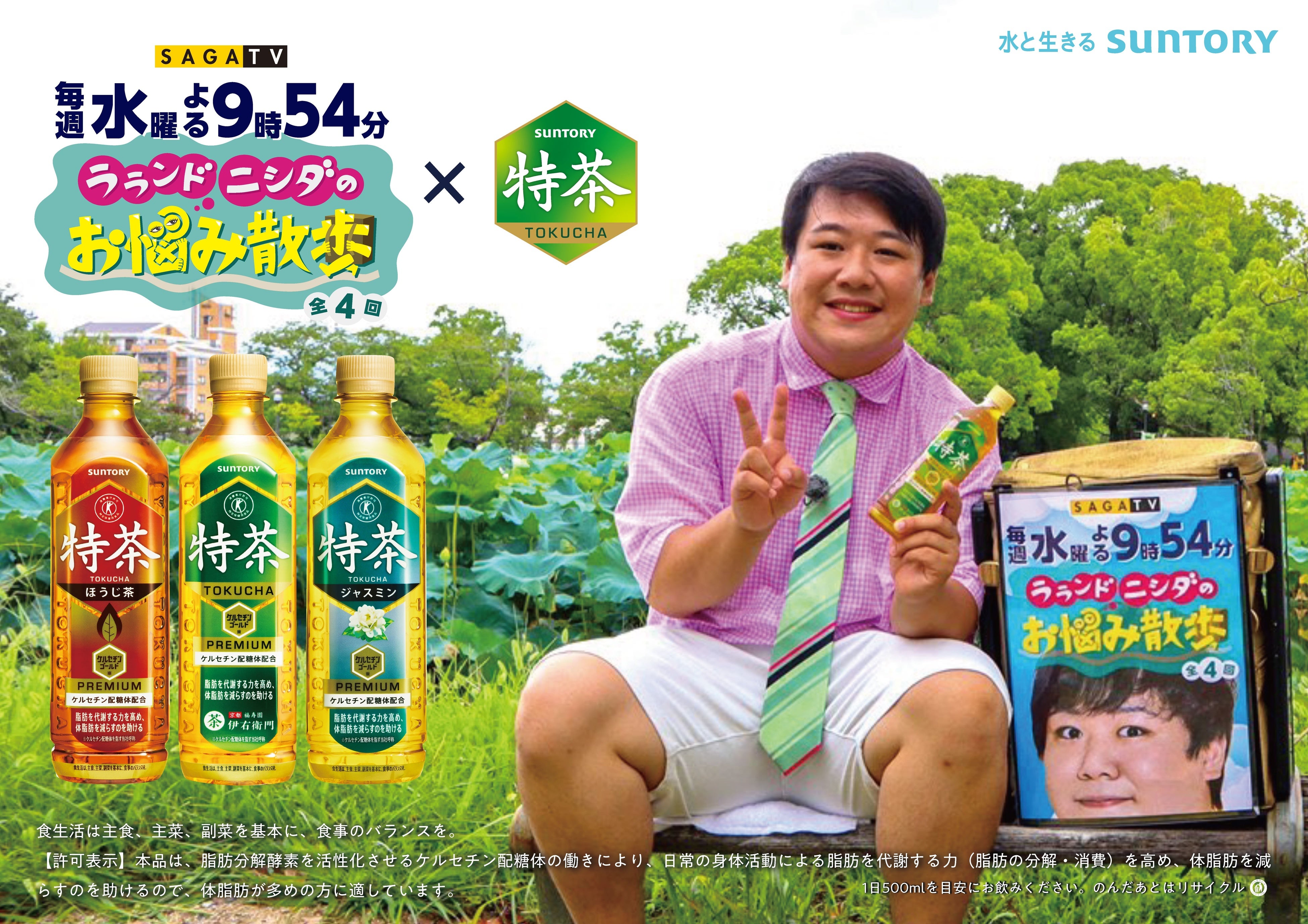 サントリー食品インターナショナル(株)は、サントリー緑茶 伊右衛門「特茶」(特定保健用食品)のコミュニケーション施策の一環として、2022年9月7日(水)よりサガテレビにて放映開始の散歩番組「ラランド ニシダのお悩み散歩」に一社提供します。