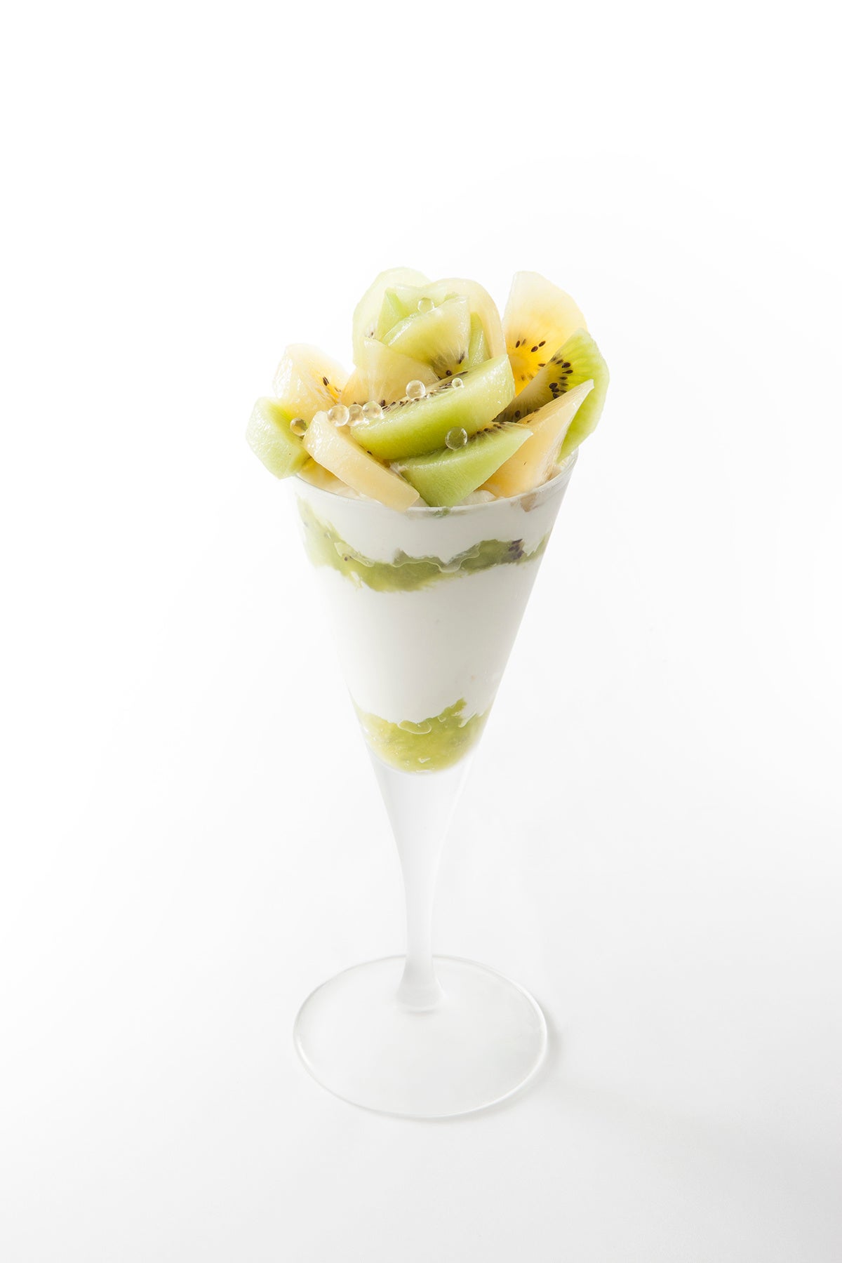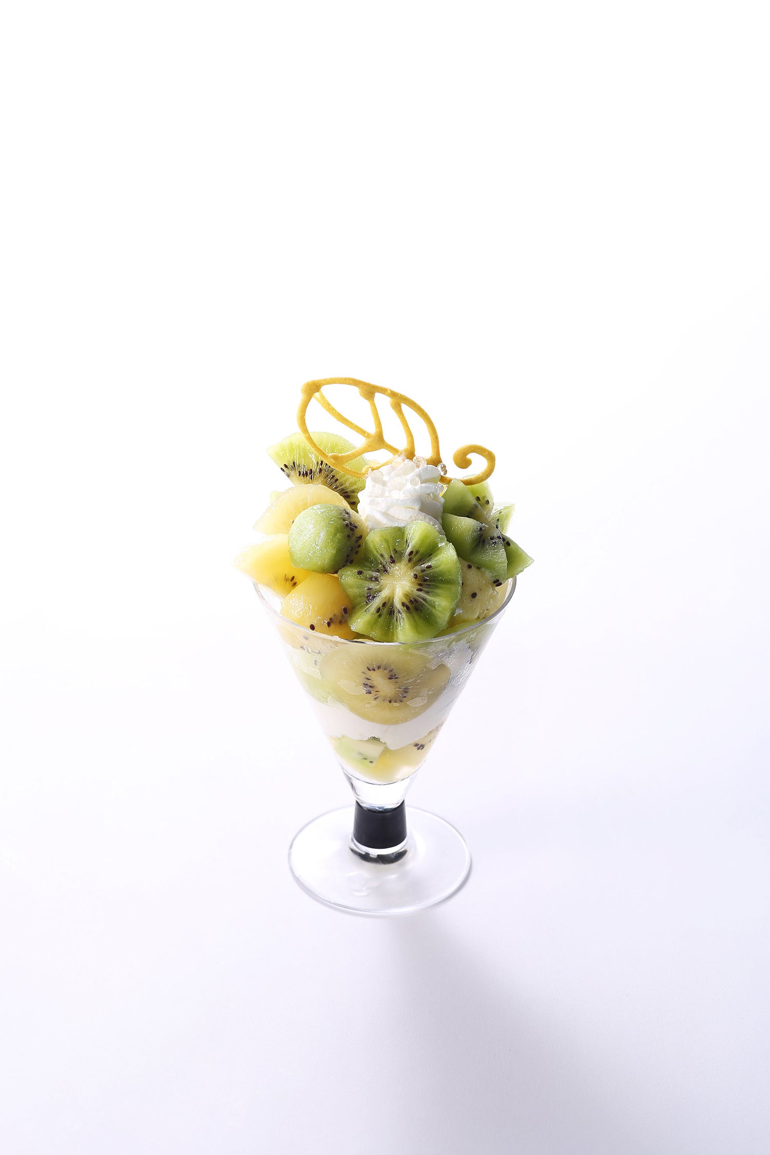バランスのとれた甘みと酸味が魅力のグリーンキウイと、トロピカルな甘さが特長のサンゴールドキウイをパフェに仕立てました。