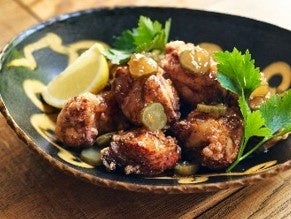 「玉ねぎぽん酢」の甘酸っぱさととろみを活かして、甘酢あんの代わりとして使用。唐揚げをさっぱりと味わえる、簡単レシピです。