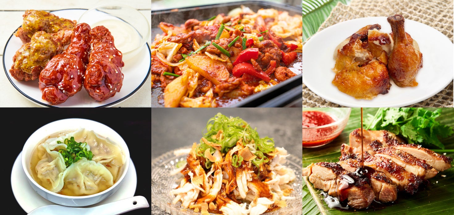 旅行に行きたい国トップの韓国、台湾をはじめ、近年話題のタイまで、各店が本場さながらのメニューを開発。カラッと揚げた手羽元に甘辛いヤンニョムソースを絡めた「やみつき旨辛ヤンニョムチキン」、職人がつくる秘伝のコチュジャンソースが味の決め手の「タッカルビ」、脂がのった肉汁たっぷりの若鶏を丸焼きにして食べやすいサイズにカットされた「王道丸焼きチキン」はパリパリの皮がたまらない。点心師が作る「旨味たっぷり!特製・鶏肉水餃子」はもっちり食感の皮で閉じ込めた本場の味が味わえ、柔らかくジューシーに仕上げた蒸し鶏を台湾風にアレンジした「蒸し鶏の台湾ソース」はスパイスのきいた味噌ベースの旨辛ソースで。数種類のハーブとナンプラーなど、タイの調味料にじっくり漬け込んだ鶏もも肉を炭火で香り付けした「黒糖ココナッツソースのガイヤーン」は今トレンドの味に仕上げた逸品。