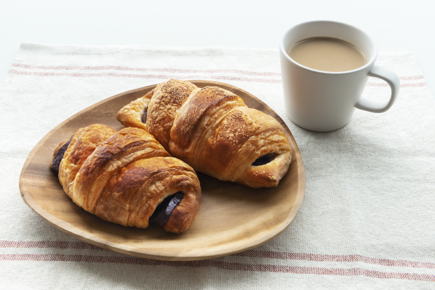 トースターで軽くリベイクしていただくことでおいしくお召し上がりいただけるクロワッサンです。サクサク食感でおいしくお召し上がりいただけるように発酵バター入りマーガリンを折りこんだ生地を36の層に重ねて焼き上げました。北海道産の小豆を使用した「あんこ」とカカオ分37%配合のチョコレートを使用した「チョコ」をご用意しました。カフェオレや牛乳によく合うようなしっかりとした味に仕上げています。お休みの日の朝食にピッタリのクロワッサンです。