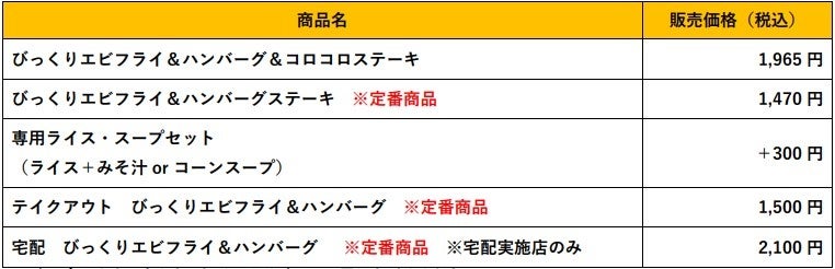 ●びっくりエビフライ&ハンバーグステーキ※定番商品