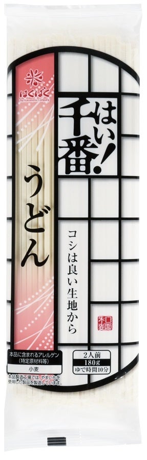 穀物のリーディングカンパニー株式会社はくばく(本社:山梨県中央市、代表取締役社長:長澤 重俊)は、『はい!千番うどん180g』を2022年9月1日(木)より全国で新発売します。
