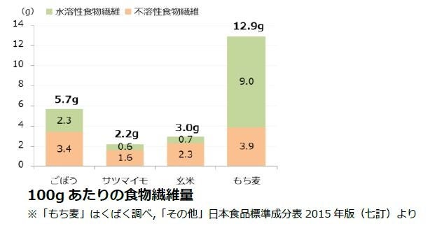 1食(100g)でレタス1.4個分の食物繊維が摂れる!食物繊維の豊富な腸活食材「もち麦」入り