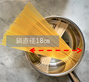 ゆで時間7分半&折らなくても小鍋に入る18cmの麺長で手間なし調理