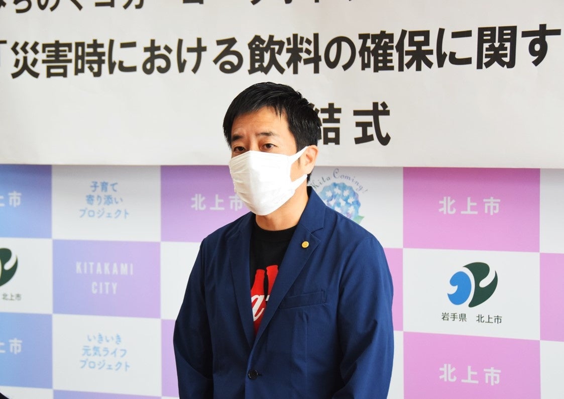 「激甚災害に指定された8月中旬の北東北の水害をはじめ、近頃は温暖化を強く感じさせるような状況が続いており、いつこの地域に大きな災害が起こってもおかしくないという危機感を感じています。そのような大規模災害が発生した際には、住民の皆様の命を維持するために飲料がなくてはならないものになりますので、今回の締結は非常に意義があるものと考えております。今後も普段からのコミュニケーションにより、様々な情報交換をさせていただきながら、いざという時にも安心できるまちづくりを目指してまいります。」