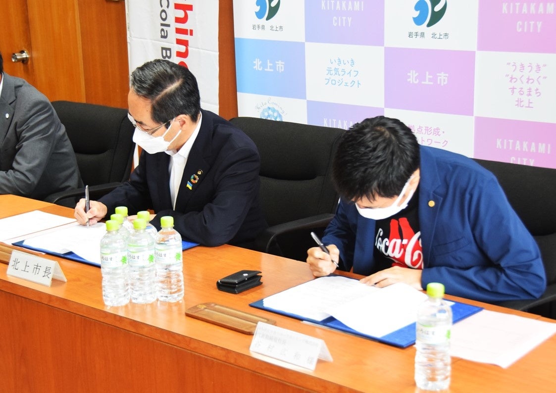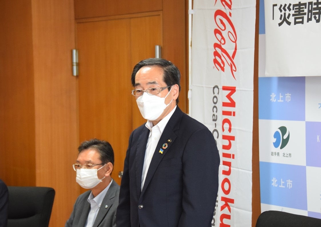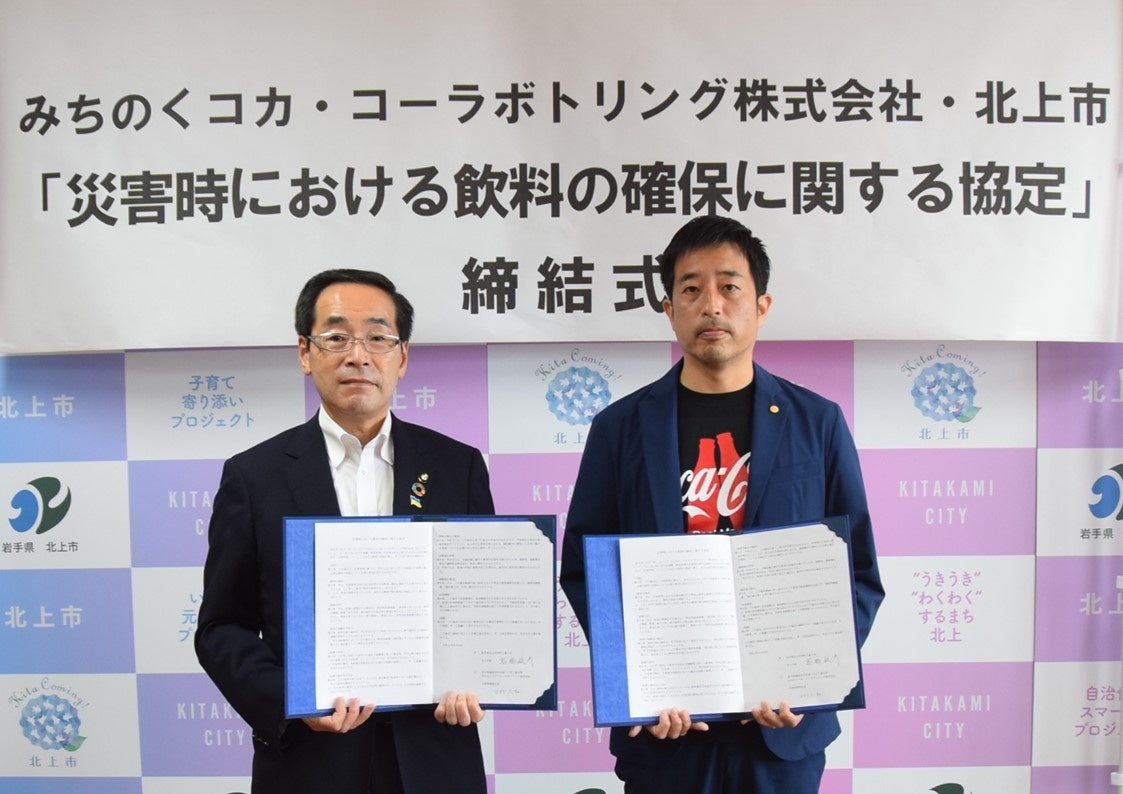 このたび、みちのくコカ・コーラボトリング株式会社(本社: 岩手県盛岡市、代表取締役社長: 谷村 広和)は、岩手県北上市(市長: 髙橋 敏彦)との間で、「災害時における飲料の確保に関する協定」を締結することとし、8月24日(水)に締結式を開催いたしました。