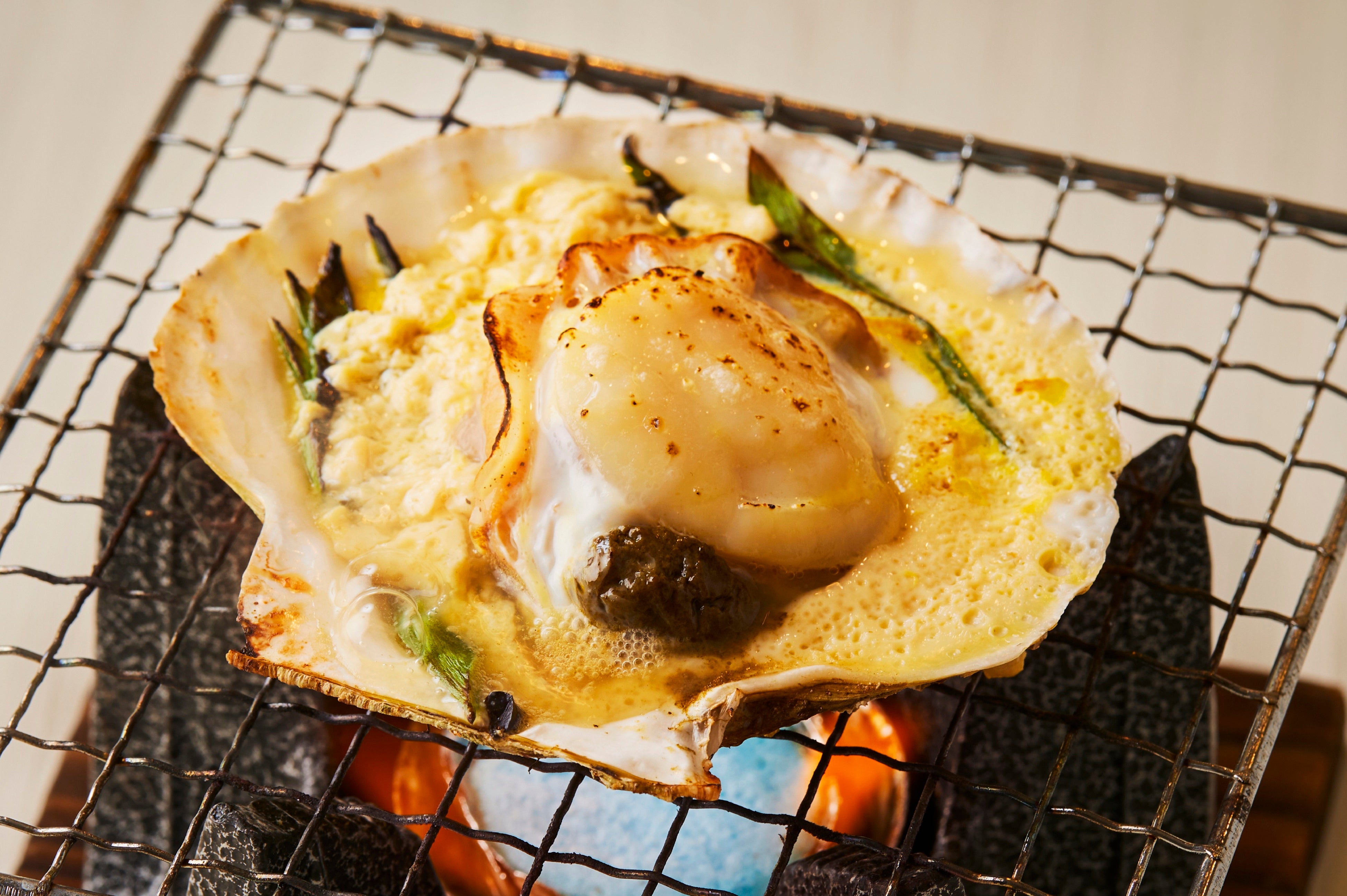 ・青森県産帆立と青玉の貝焼き