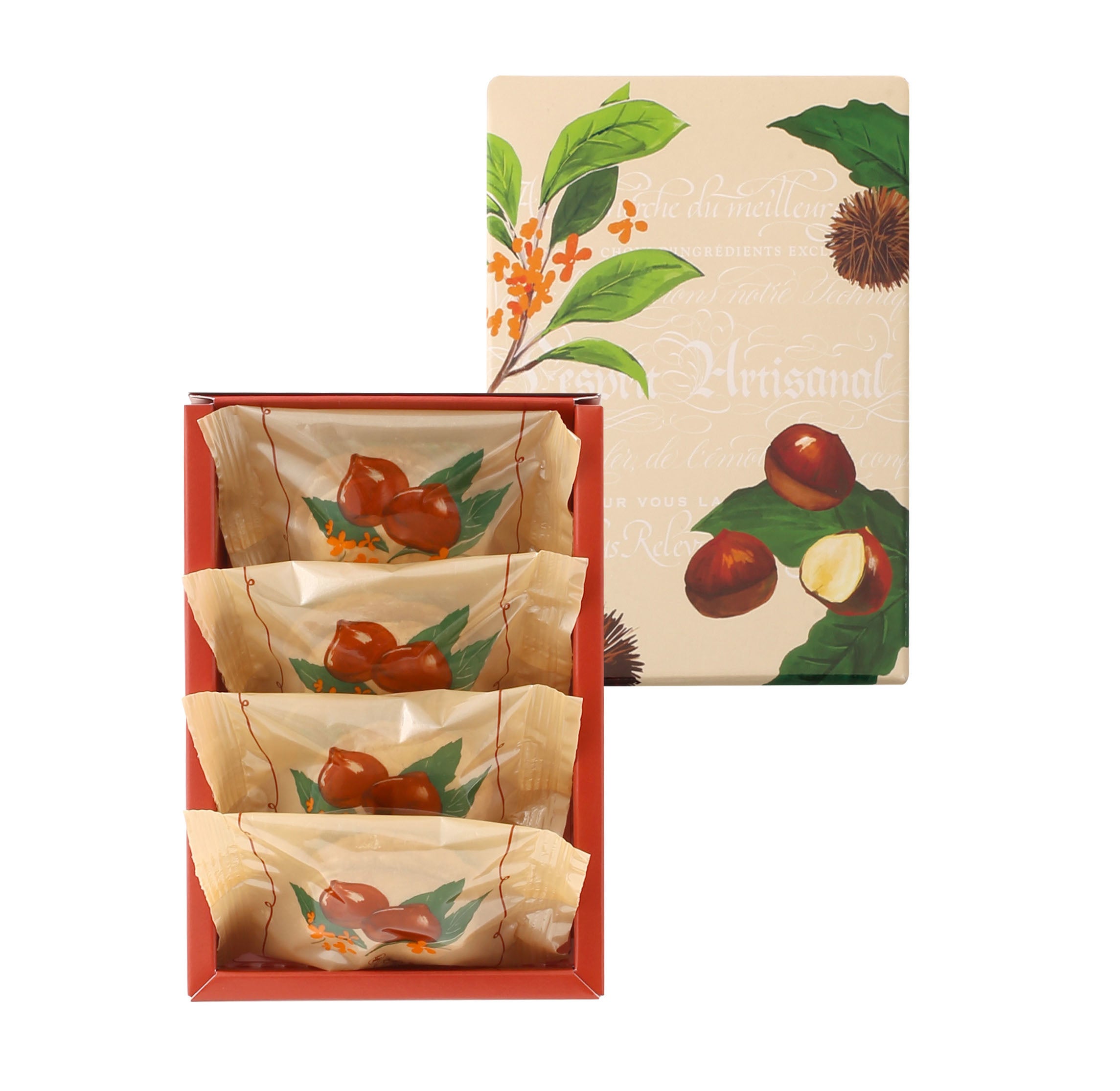 【内 容】 栗のクリームサンド 4 個、ラング・ド・シャ・ショコラ 5 個