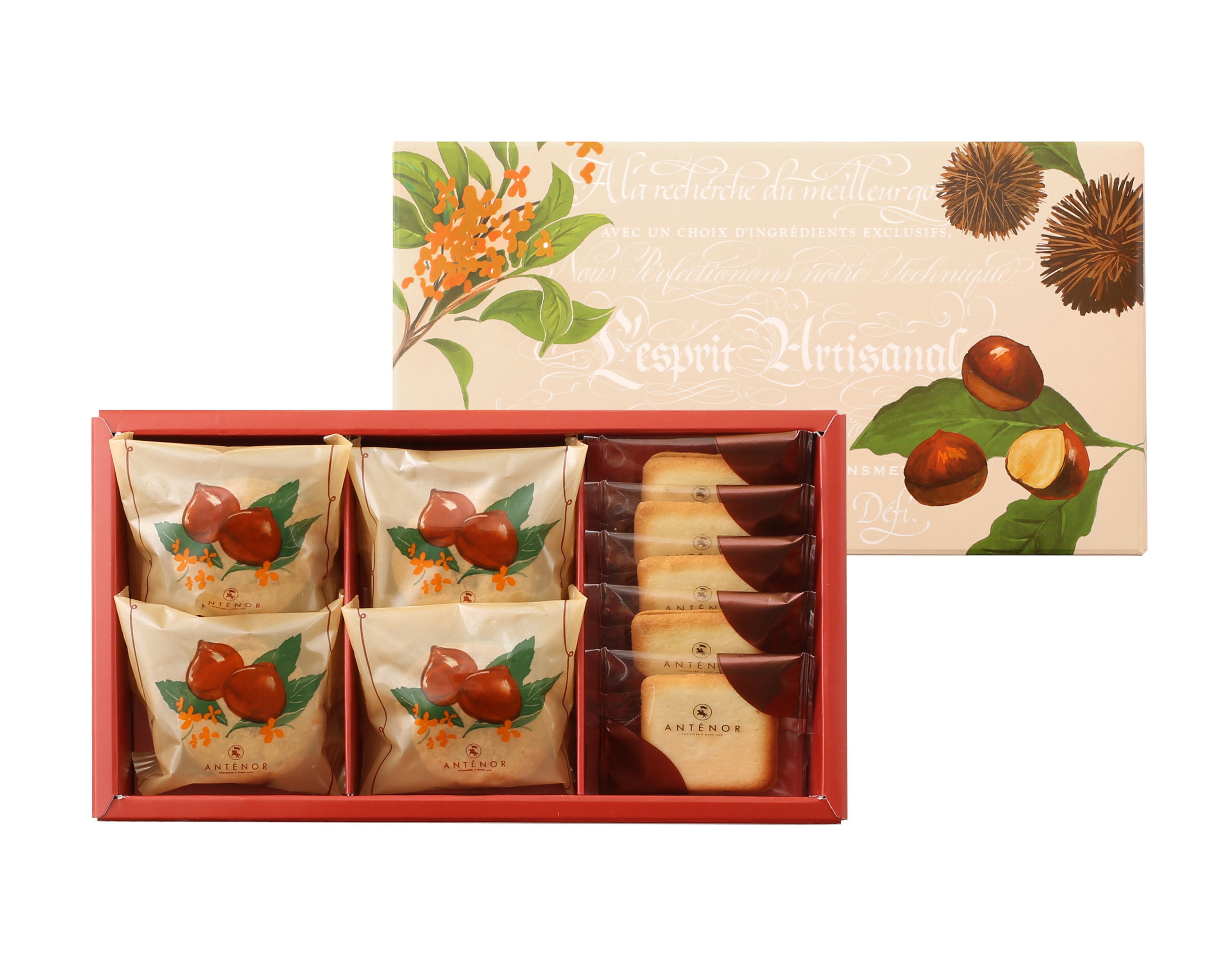 「栗のクリームサンド」にロングセラーのラング・ド・シャやフィナンシェを詰め合わせた「栗のクリームサンド アソート」もご用意しております。 季節のお手土産に是非ご利用ください。