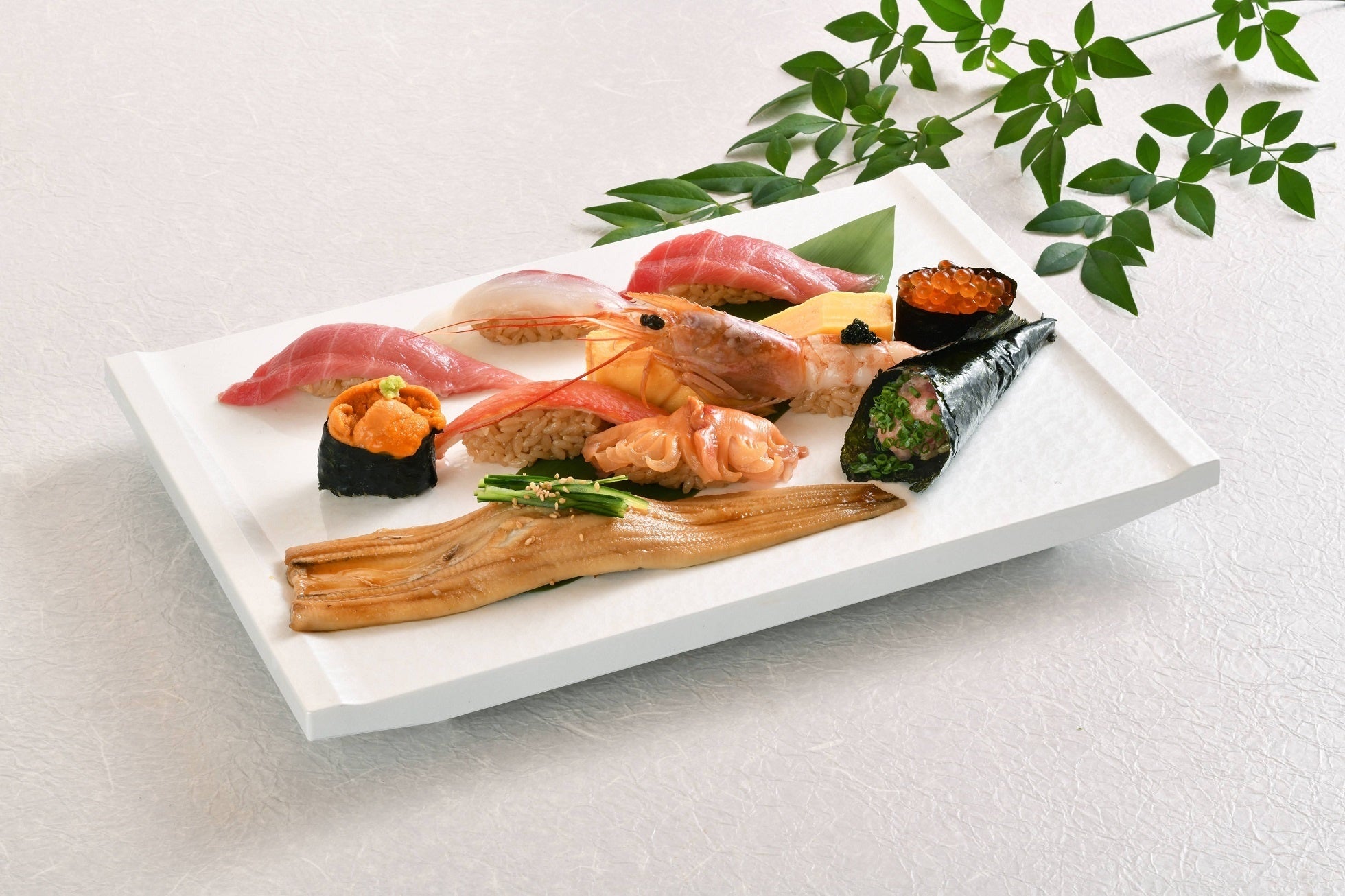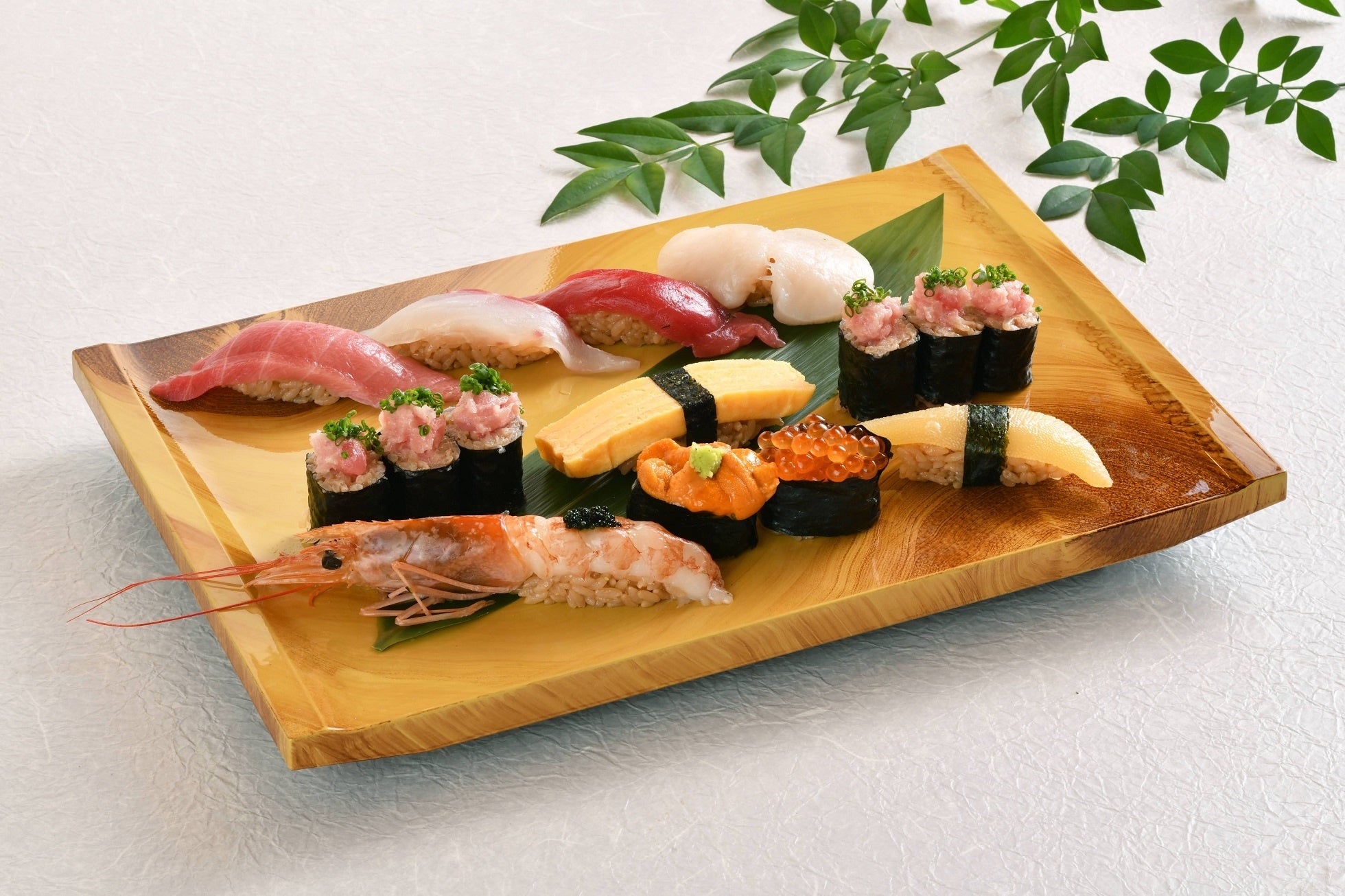 魚物流の常識を変えた「羽田市場」。今回は漁場として豊かな福岡から直接空輸で伊丹空港を経由し、産地から届く超速鮮魚や、青森の漁業組合から産地直送される「天然生本マグロ」、北海道紋別漁港にて直接買い付けた帆立など新鮮な魚介を中心に、職人の技と伝統の赤酢を使った江戸前寿司をお楽しみいただきます。