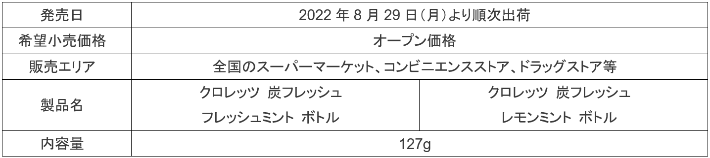 「炭フレッシュ」ボトルタイプは、マイルドな辛さのフレッシュミントと、フルーティーな味わいのレモンミントの2種。新ボトルは8月下旬より順次お目見えします。