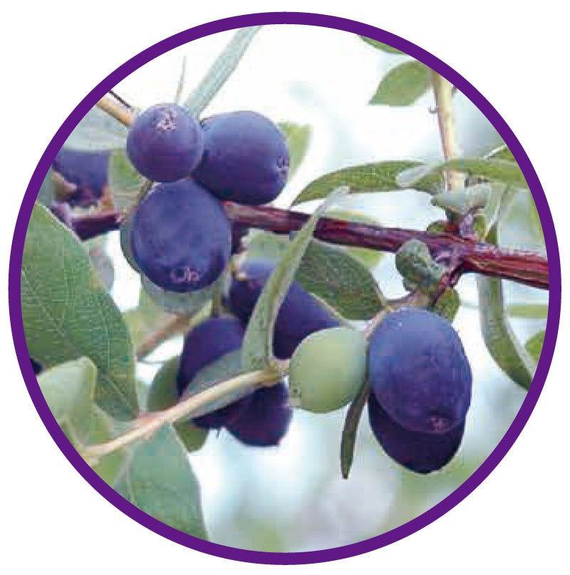 ハスカップはブルーベリーのような青紫色の実をつける北海道の代表的な果物です。 北海道の苫小牧が主な産地で、栄養が豊富なため昔からアイヌの人々に「不老長寿の実」として知られています。ブルーベリーの数倍のアントシアニン、ミネラルやビタミン類を含む果実です。
