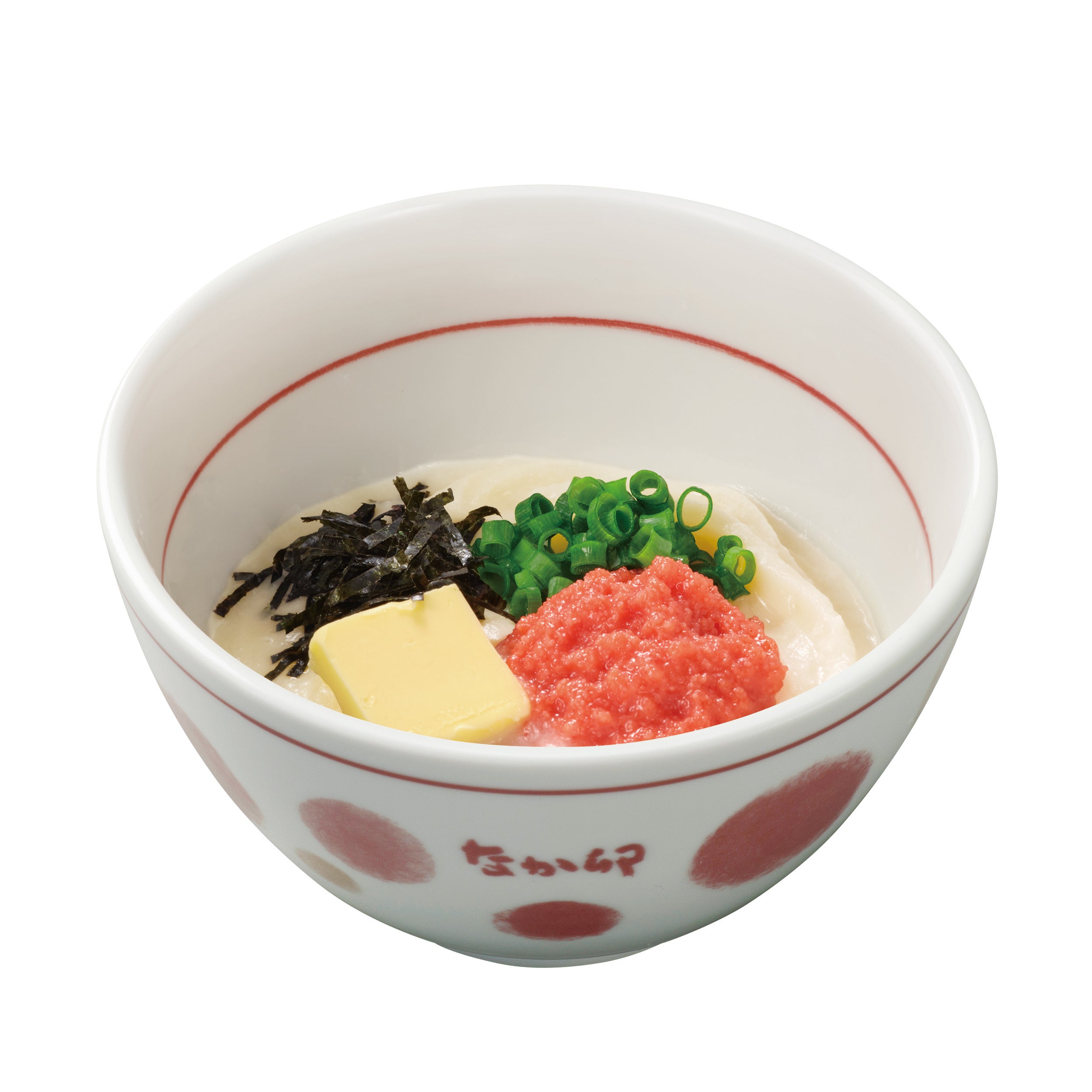 「明太子クリームうどん」は、なか卯自慢のうどんだしとホワイトクリームソースをからめたうどんに、たっぷりの博多明太子、バター、きざみ海苔、青ねぎをのせた、和と洋を融合させた商品です。