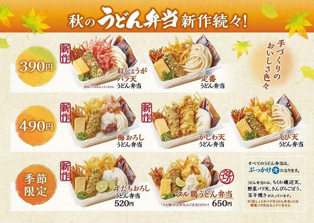 【おすすめポイント③】全7商品のうち5商品が新作!さっぱりからがっつりまで秋の「丸亀うどん弁当」は新作続々