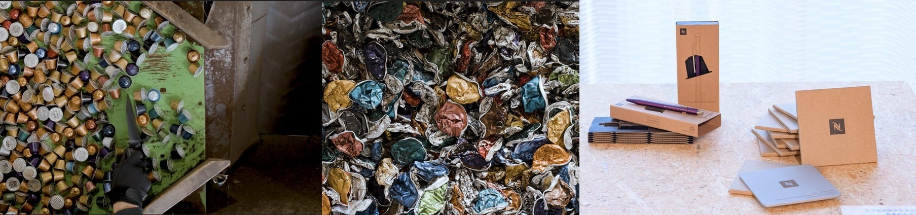ネスプレッソはコーヒーが育つその地球に敬意を払い、持続可能なコーヒーの提供に向けた取り組みのうちの一つとして、2020年8月より日本にて独自のリサイクルプログラム「ネスプレッソ リサイクルプログラム」を開始しました。カプセル回収ボックス設置店舗やパートナー企業等にて回収した使用済みカプセルを分別し、カプセルのアルミニウムは再生アルミニウム素材に、またコーヒーかすは培養土へと生まれ変わっています。