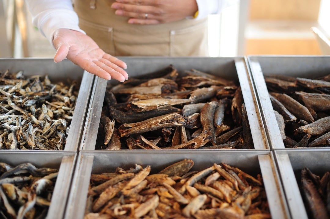 明治四年(1871)創業の豊洲市場水産仲卸「尾粂」が開発した”世界にひとつだけのだしパックを作られる”サービス。150年以上乾物を目利きしてきた知見を活かし、揃えた24種類の国産天然原料から複数種類を選べば、オリジナルのだしパックを作ることができる。