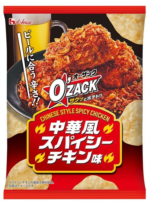 ハウス食品は、スナック菓子「オー・ザック」<中華風スパイシーチキン味>を、8月29日からコンビニエンスストアで先行発売、9月19日からスーパーなどで一般発売します。クミンの香りに、唐辛子と花椒の辛さが特徴の、ビールに合う中華風でスパイシーなフライドチキンのおいしさを表現しました。内容量63g、税別希望小売価格は120円。