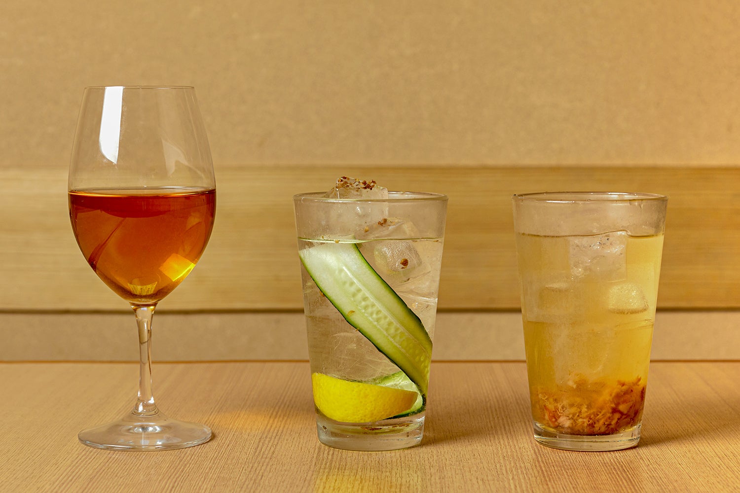そんな“旨いツマミ”に合わせるお酒は、レモンのオイル成分と焼酎を乳化させ、濃厚でビターな大人の味わいが特徴の「長介白湯檸檬サワー」、ウイスキーにビアホップの香りを纏わせた「HIP HOPハイボール」、マスカットのようなフルーティーな味わいの烏龍茶“東方美人”を使用した「究極のウーロンハイ」など、こだわりのサワー、希少な自然派ワイン、全国の酒蔵から厳選した珍しい日本酒、九州各地の地酒や果実酒を豊富に取り揃えました。