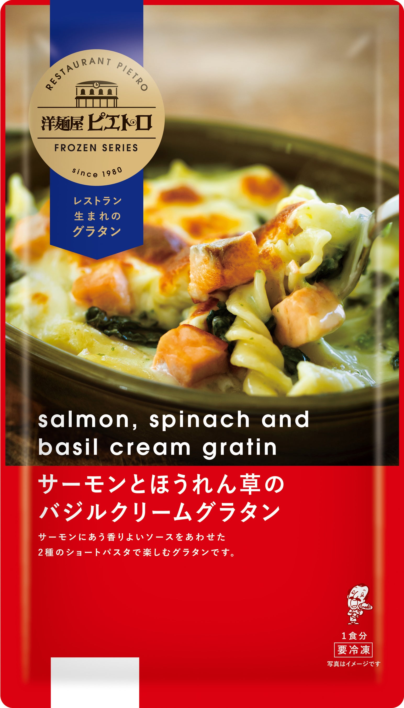 「〔冷凍〕洋麺屋ピエトロ サーモンとほうれん草のバジルクリームグラタン」