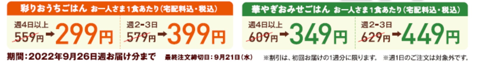 お一人さま1食あたり299円よりご注文できる「新登場キャンペーン」を実施中!ぜひこの機会にご利用ください。