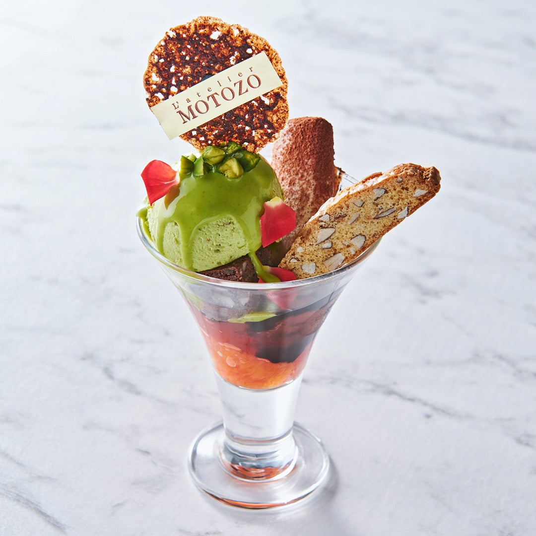 イタリア調理師連盟に所属する数少ないパスティッチェリア。世界のトップパティシエが称賛するイタリアのナッツやブラッドオレンジ、エスプレッソを巧みに使い、ジェラートをはじめ、セミフレッドやトルタ・ビスコッティを贅沢なパフェ仕⽴てにしました。