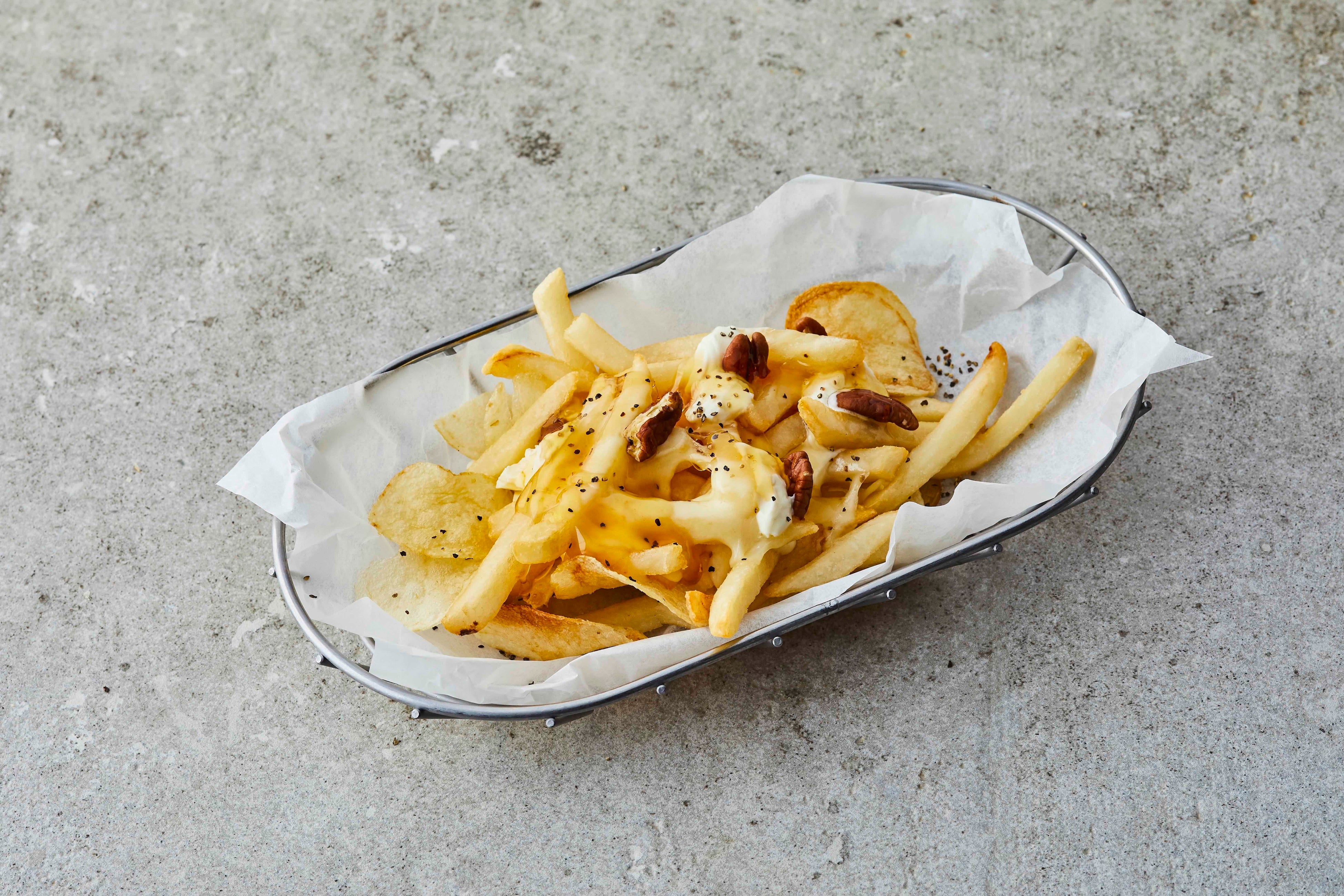ホクホク食感の「ストレートカット」でソースをディップしたり、パリッと食感で具材のうまみをダイレクトに感じられる「ポテトチップス」のミックス盛りでご提供します。