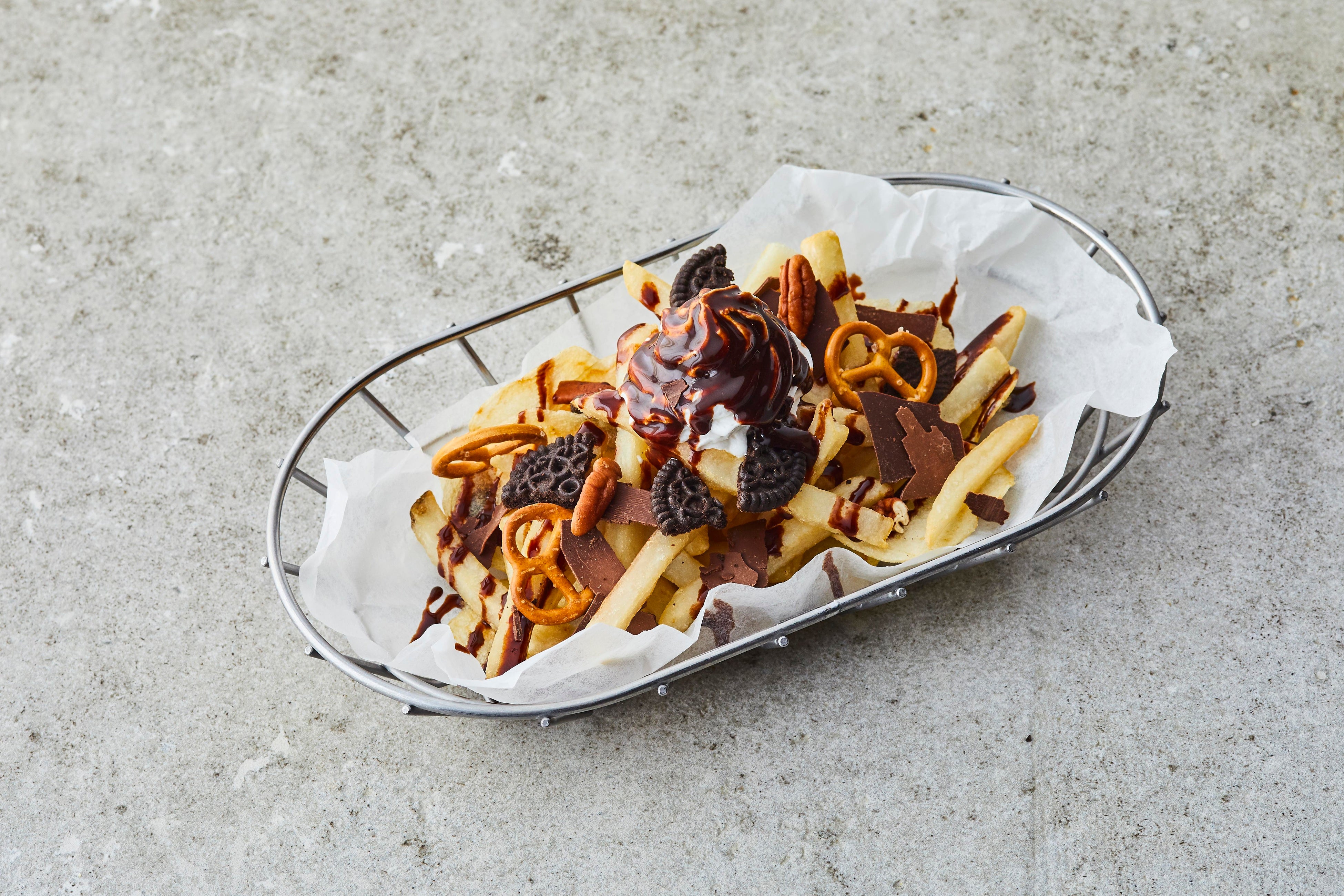 熱々のポテトへたっぷりのチョコレートソース・ホイップ・クッキーをトッピングした罪深い一品。最強の甘じょっぱさのハーモニーをお楽しみ頂けます。