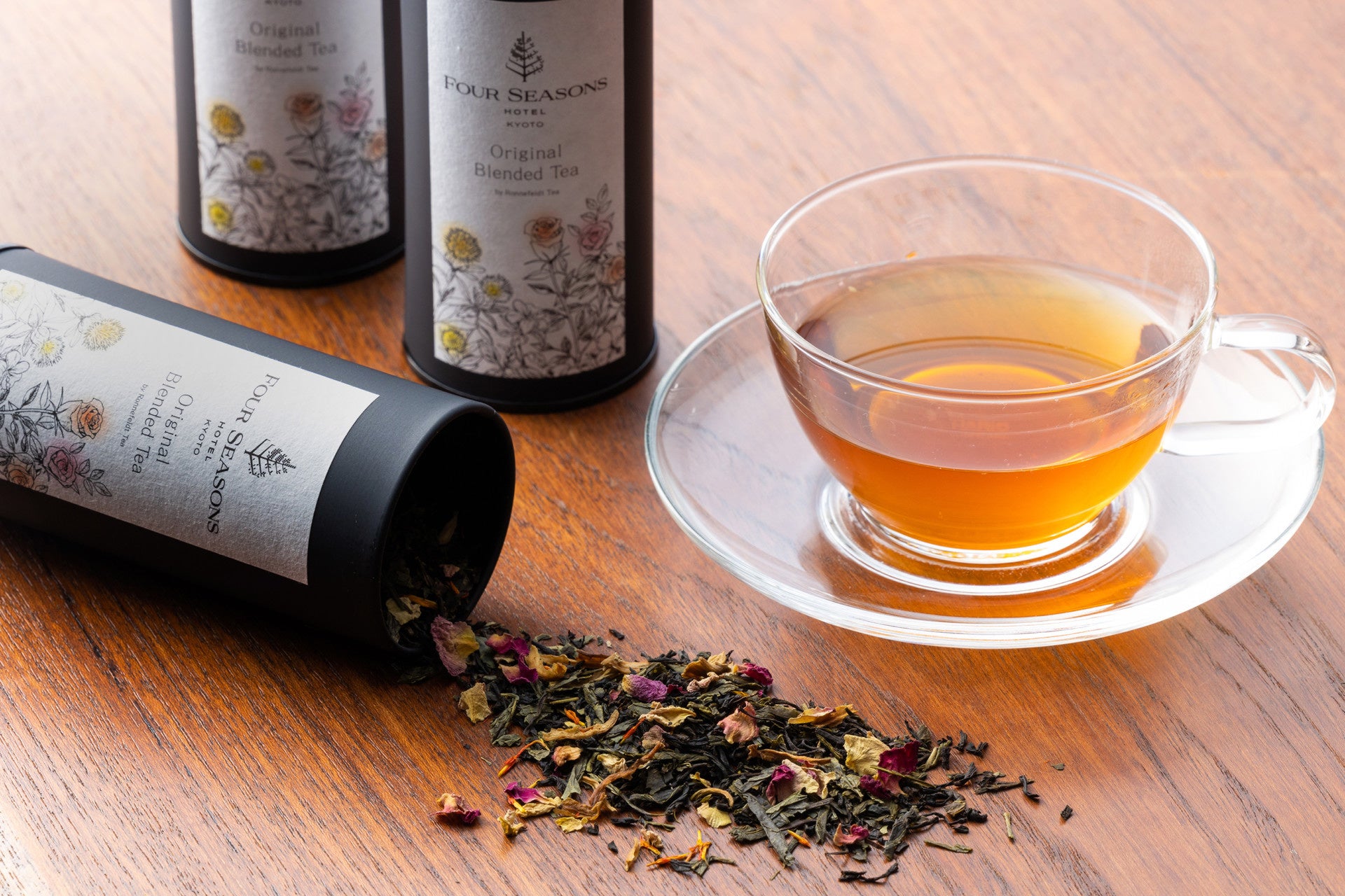 上記の秋限定2種類のパウンドケーキやクッキー、メレンゲなどの季節の焼き菓子とフォーシーズンズホテル京都オリジナルブレンドティーを詰め合わせた、贈り物にぴったりな焼き菓子の詰め合わせギフトボックスもご用意しています。フォーシーズンズホテル京都オリジナルブレンドティーはドイツの老舗紅茶ブランド「ロンネフェルト」社のマスターティーブレンダーが、フォーシーズンズホテル京都のために創り出した世界唯一の味わいです。最高級紅茶をベースに煎茶を絶妙にブレンドし、京都らしさを感じる味と薫り。名庭 積翠園の花々を連想させる四色の花びらを配合し、そしてアクセントで加えた柚子の香りのすっきりとした余韻が特徴です。季節のペストリーと共にお楽しみください。