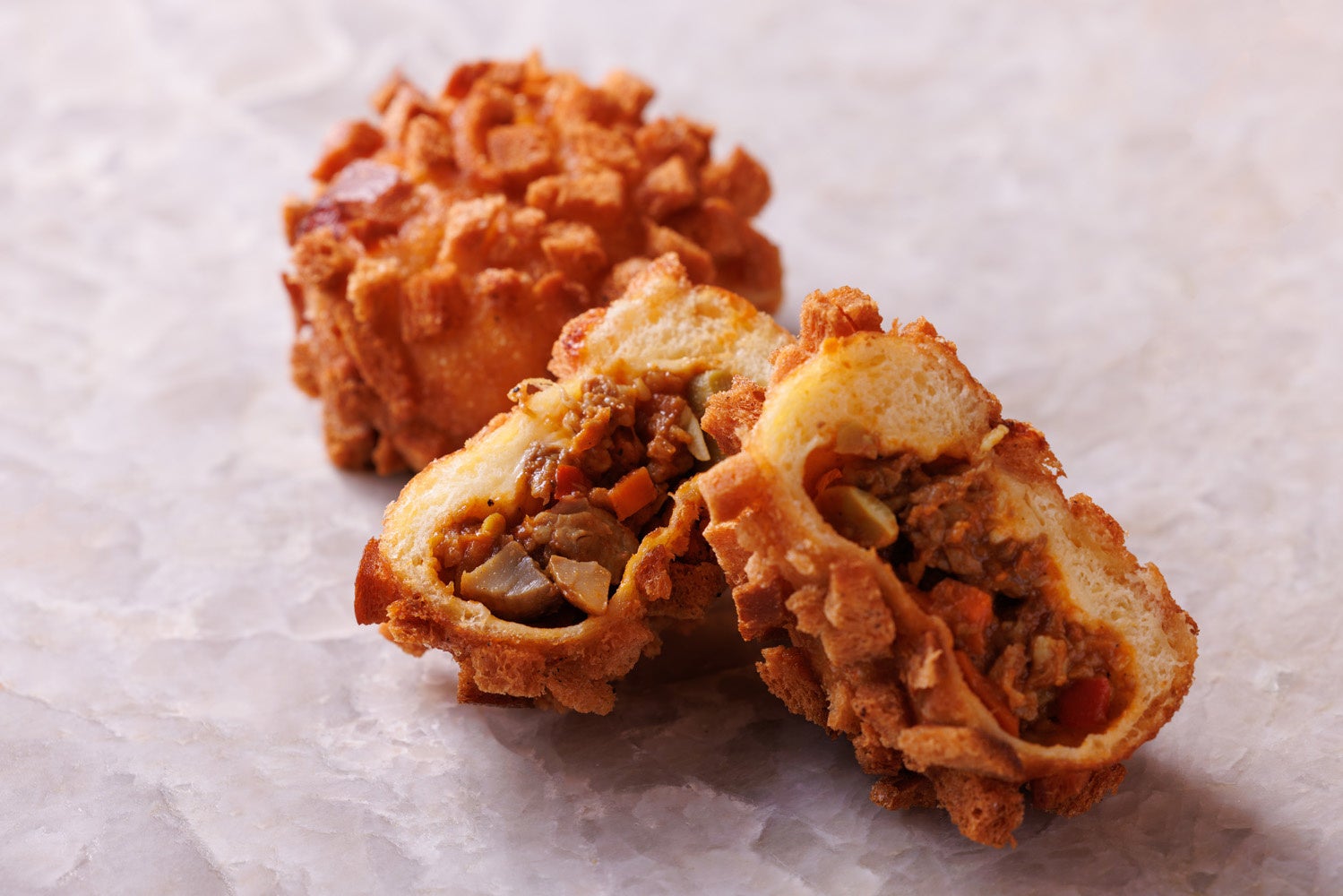 チーフベーカリー西山のオリジナルレシピの秋野菜カレーを、このカレーパンのためだけに精製したザクザクのパン粉で包みました。食べ応えある、大人気の一品です。