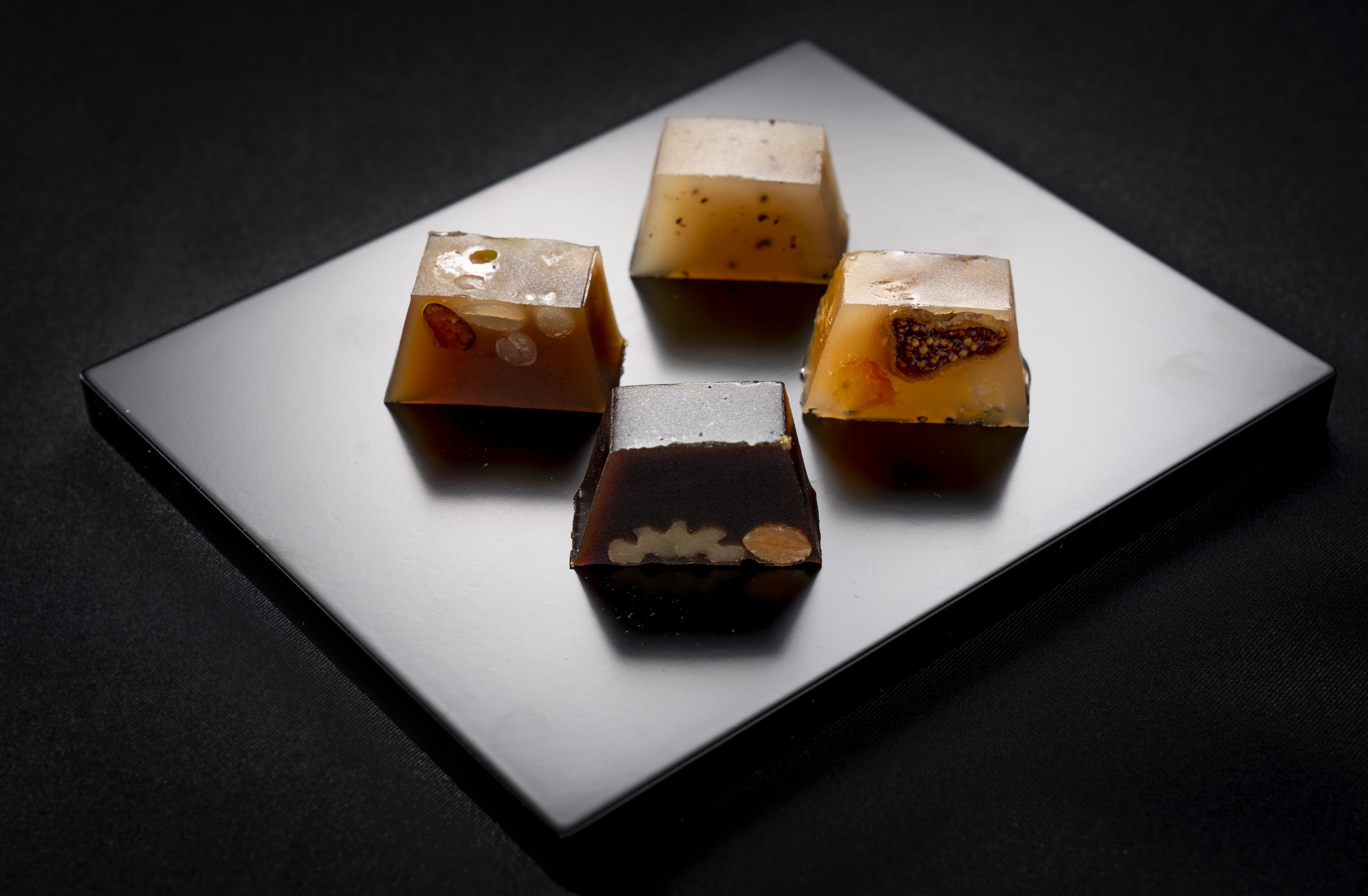 ドライフルーツ イチジク、パイン等をリモンチェロ羊羹に流し入れました。白ワインなどに。