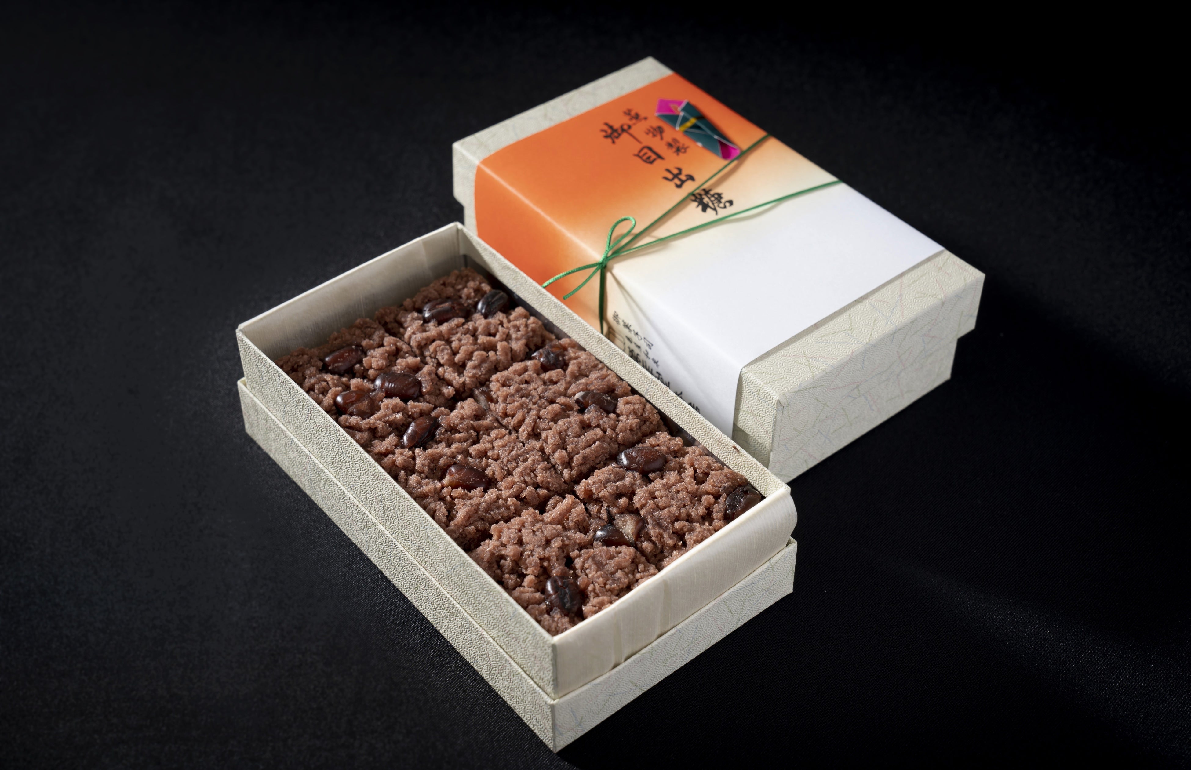 銘菓「御目出糖」は元禄より家伝の蒸し菓子で、小豆の風味と独特食感が皆様に愛されています。