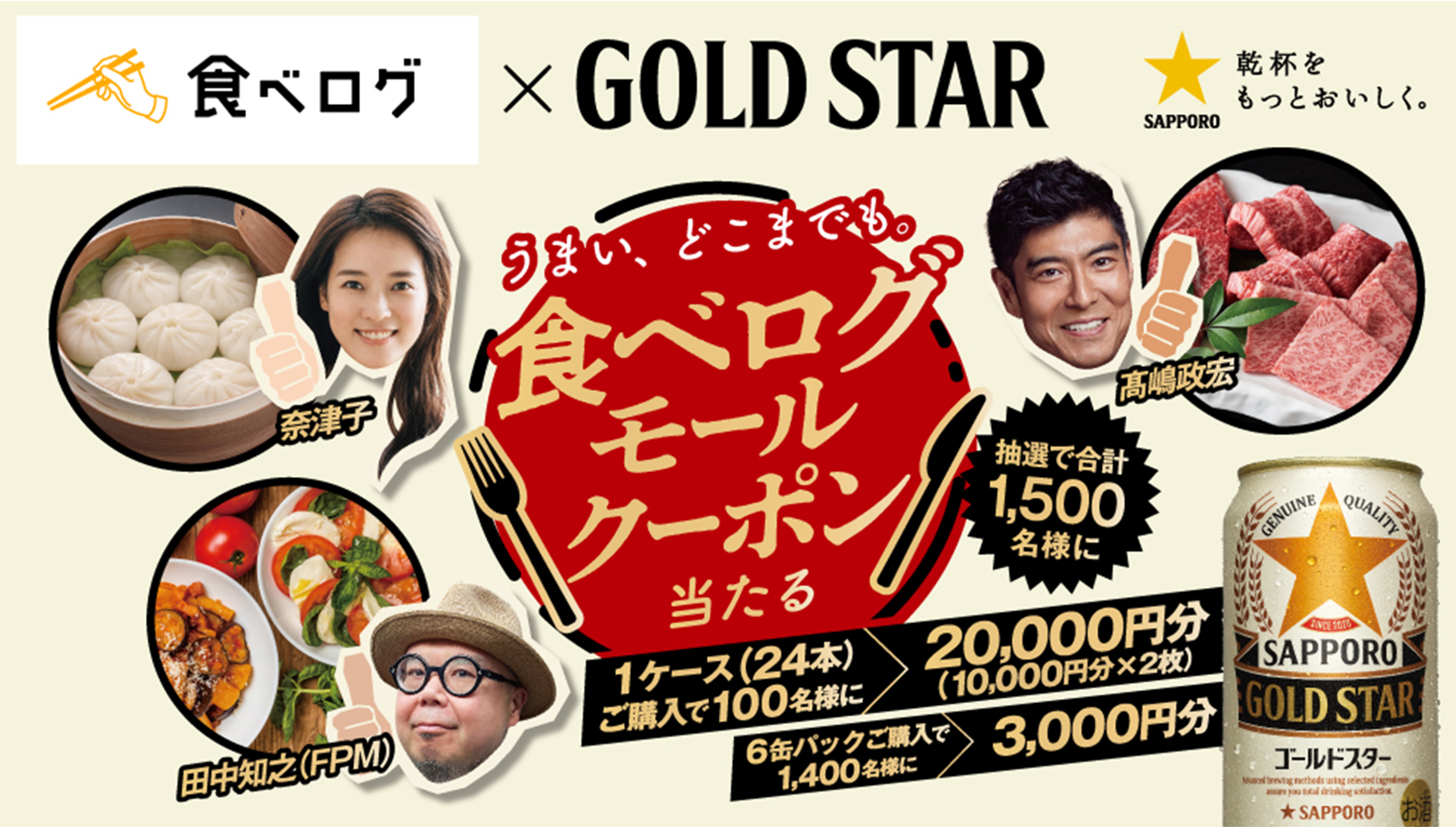 サッポロ GOLD STAR「うまい、どこまでも。食べログモールクーポン当たる!」キャンペーンパック