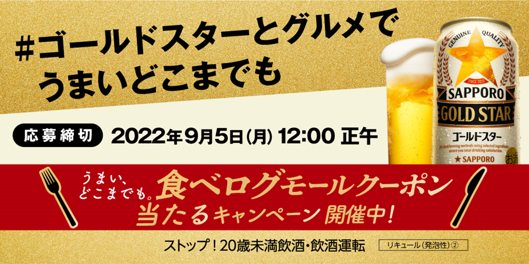 サッポロ GOLD STAR「うまい、どこまでも。食べログモールクーポン当たる!」キャンペーン