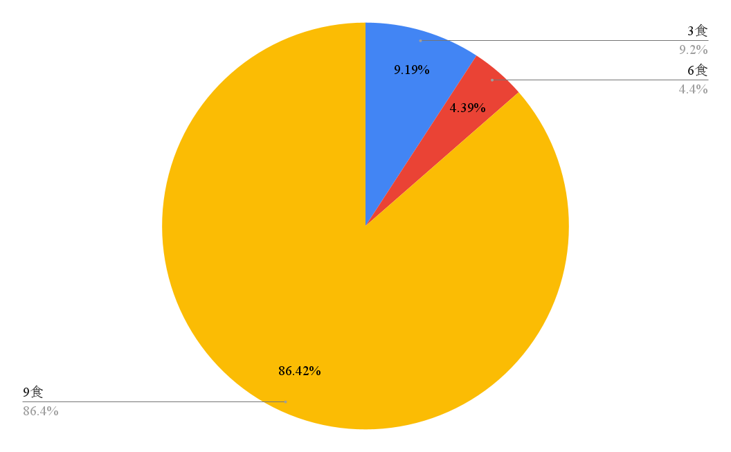 また、ちょっと贅沢な食事ということで一か月に1,2回程お召し上がりいただく想定でいましたが、実際には「9食セットを3週間おきに配送」を希望するユーザーが最も多く全体の8割を締めていました。