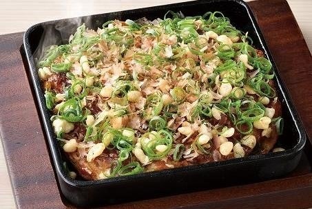「ねぎ焼き」とは、お好み焼きのキャベツの代わりに「ねぎ」をたっぷり入れて焼きあげた浪花のソウルフードです。当店では牛肉をプラスして焼き上げました。