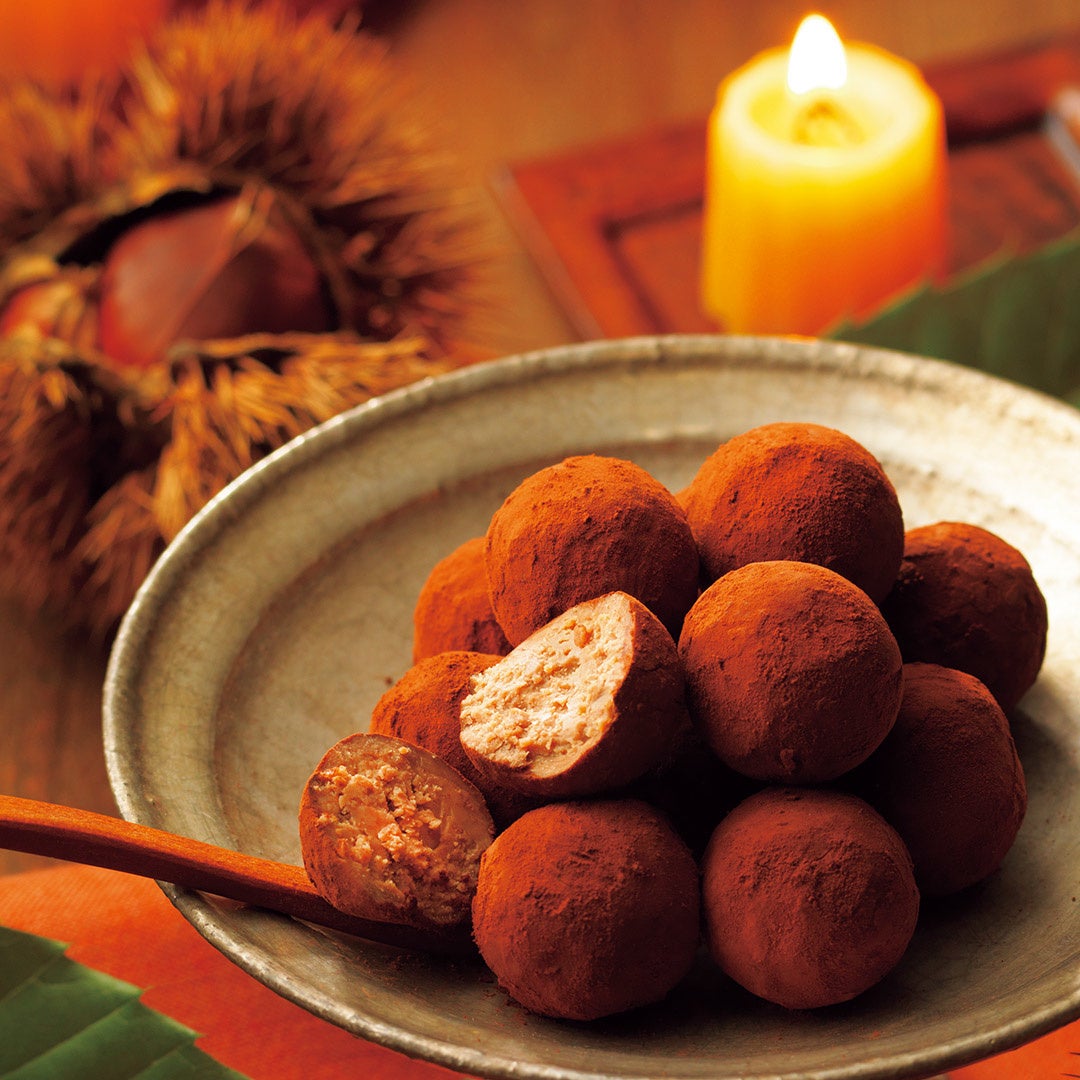 栗の風味豊かなクリームを、限定の生チョコレート[栗]で包んだ贅沢な味わいのトリフです。ふわっと香り立つ栗の風味が味わうほどに深まり、フィアンティーヌのさくさくとした食感のアクセントとともに豊かに広がっていきます。食べる直前に冷蔵庫から出し、少し常温に置いてから味わうと、より一層栗の風味をお楽しみいただけます。