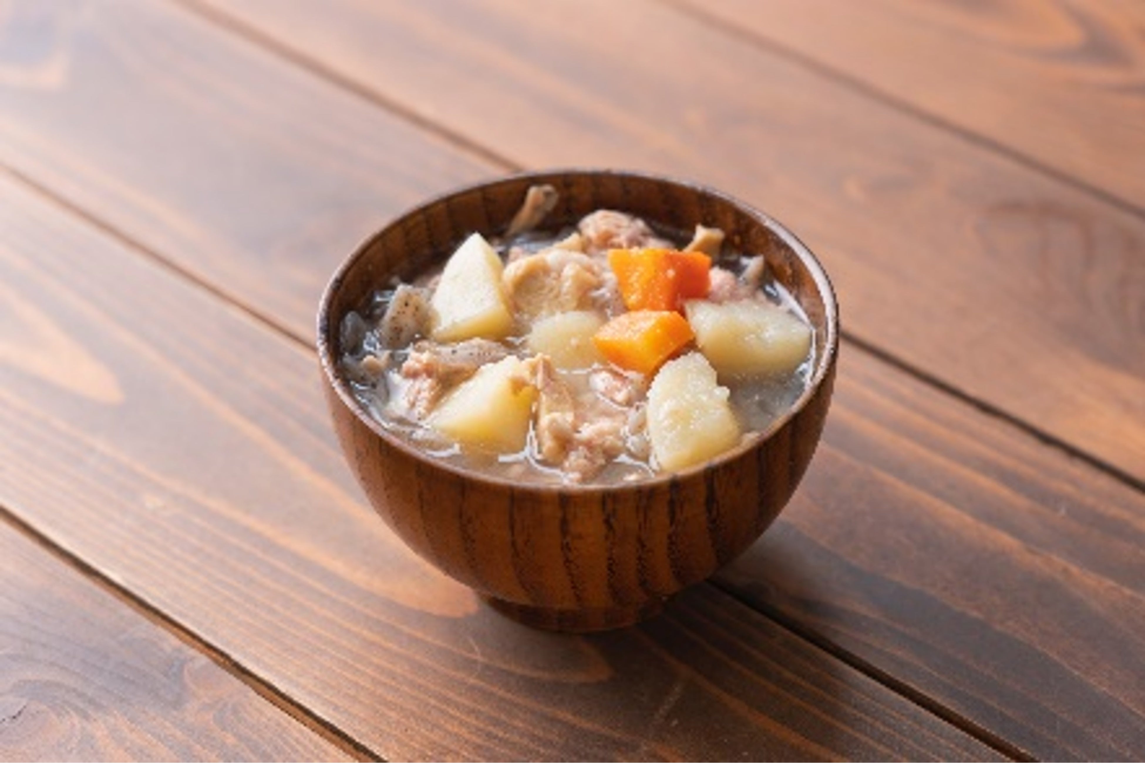 じゃがいもを多めに、豚肉や野菜と組合せ栄養バランス抜群に仕上げたオリジナル豚汁。