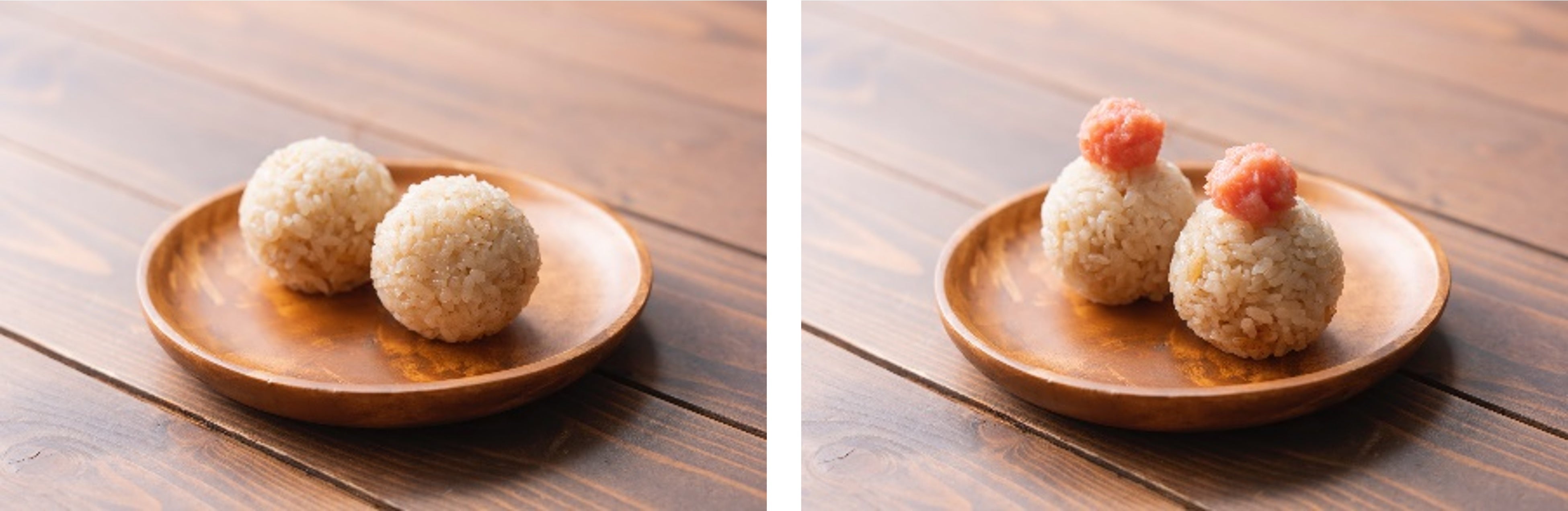 *選手コラボ第一弾として、篠山竜青選手が好きな具「たらこ」を乗せた「しのやま結び」(税込150円)を販売します(写真右。不定期にて選手コラボ商品を追加予定です)