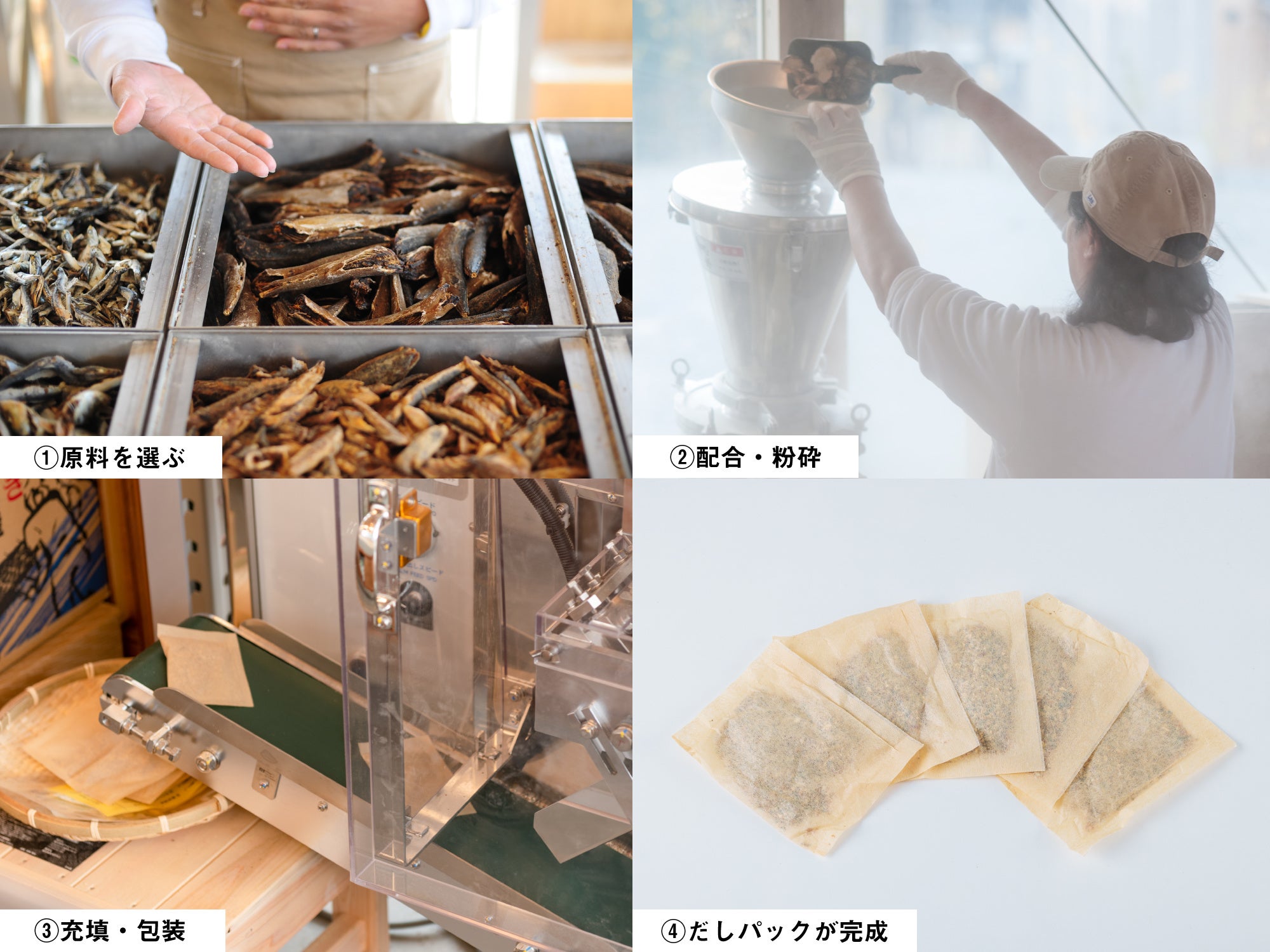 築地魚河岸内で、オーダーメイドだしパックや既製品の各種だしパック、だし醤油の素の販売を行う。