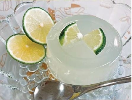 材料:へべす果汁 70ml、砂糖 80g、ゼラチン 10g、水 220ml、へべすの皮 少々