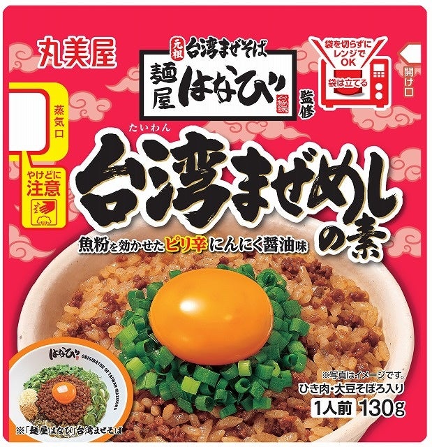 丸美屋食品工業株式会社(本社:東京都杉並区、社長:阿部豊太郎)では、名古屋の有名店、元祖台湾まぜそば「麺屋はなび」監修の「台湾まぜめしの素 レンジ対応袋入」を、2022年9月26日(月)からコンビニエンスストアで新発売いたします。話題の名古屋めしである「台湾まぜそば」をイメージした混ぜごはんの素を発売することで市場を盛り上げます。