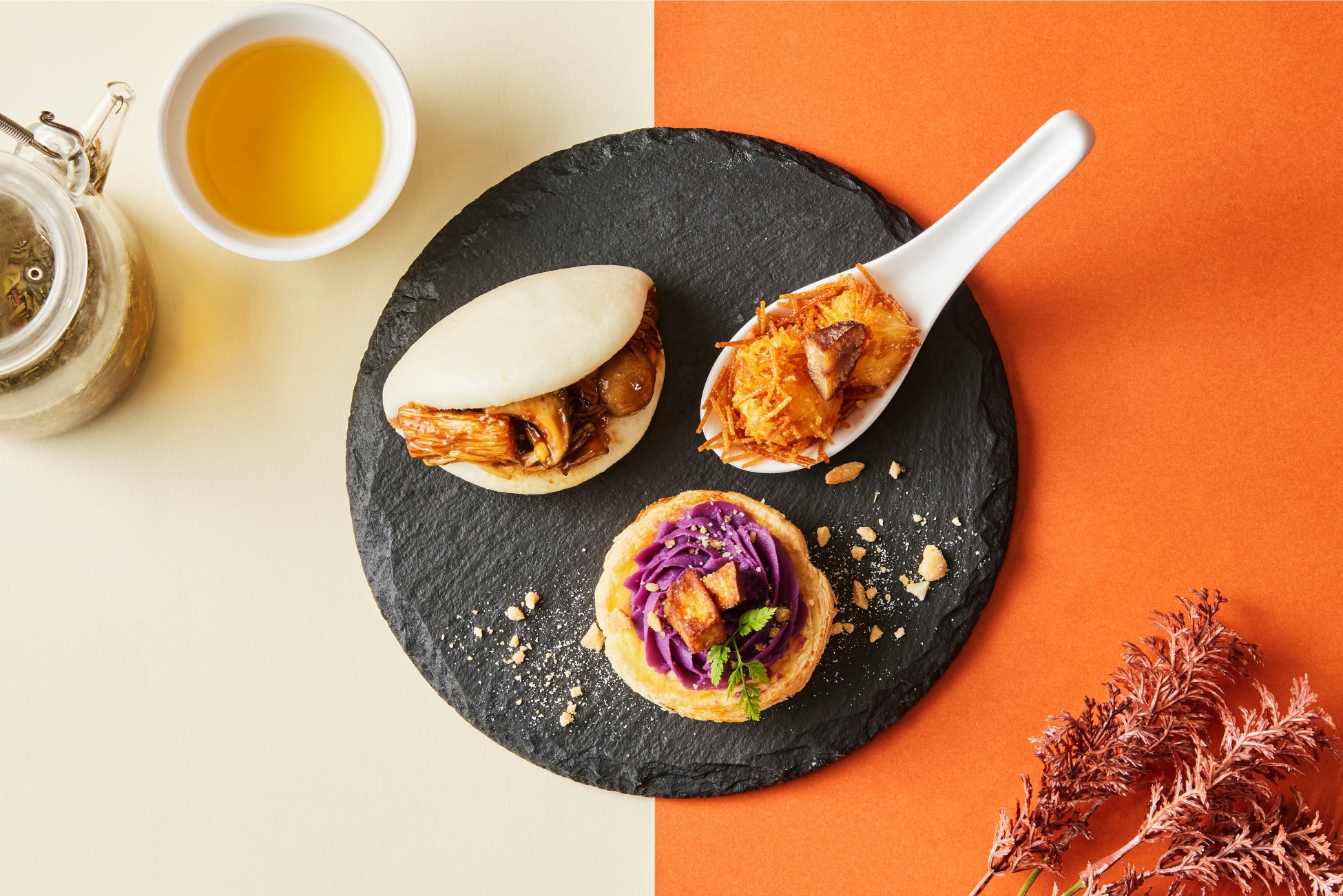 秋の味覚の定番、林檎・芋・キノコ。林檎のフルーティーな香りが口の中に広がる、カスタードのようなとろける新食感の揚げプリンは、可愛らしく毬栗仕立てに。人気のエッグタルトはさつまいもチップスの食感も楽しい紫芋のタルトに変身。濃厚なキノコの旨味を味わう中華風サンドイッチ“BAO”は食べ応えも抜群です。