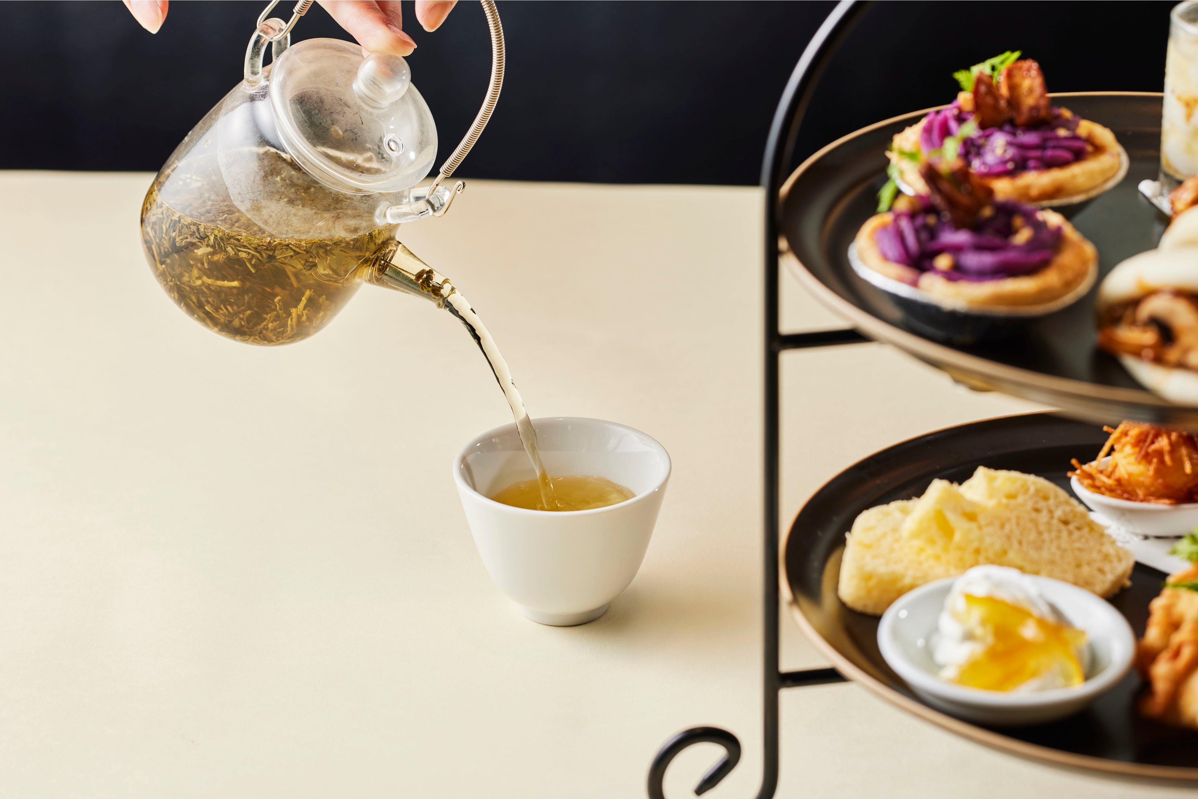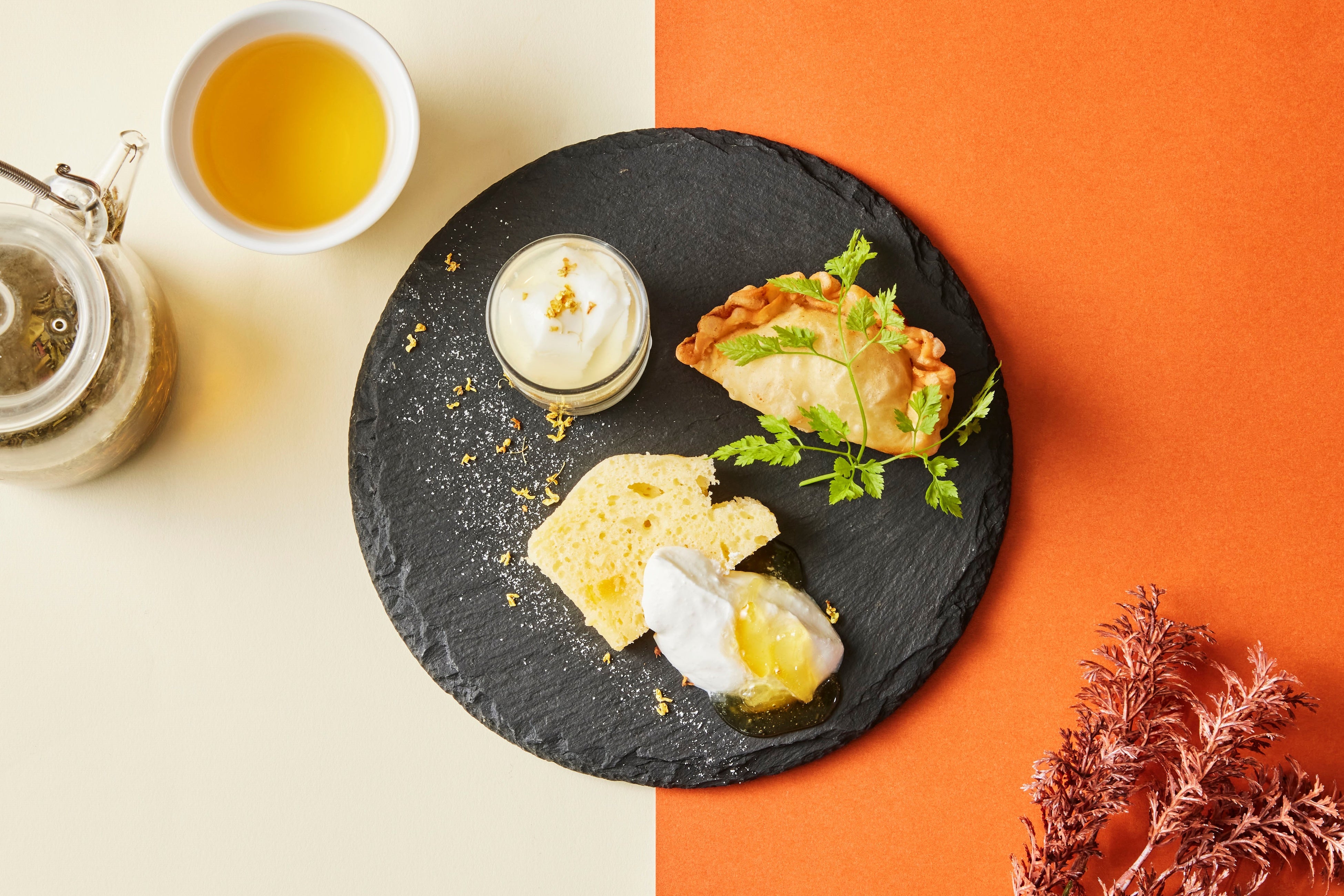 華やかな香りの金木犀や、定番のキノコ。まろやかな甘みが心安らぐ紫芋。秋の末が旬のゆずなどを取り入れたスイーツ&セイボリーで、秋の始まりから終わりまでを表現しました。また、最後までより充実したティータイムを過ごして頂きたいという思いを込めて、厳選した中国茶5種類は時間内おかわり自由でご提供いたします。