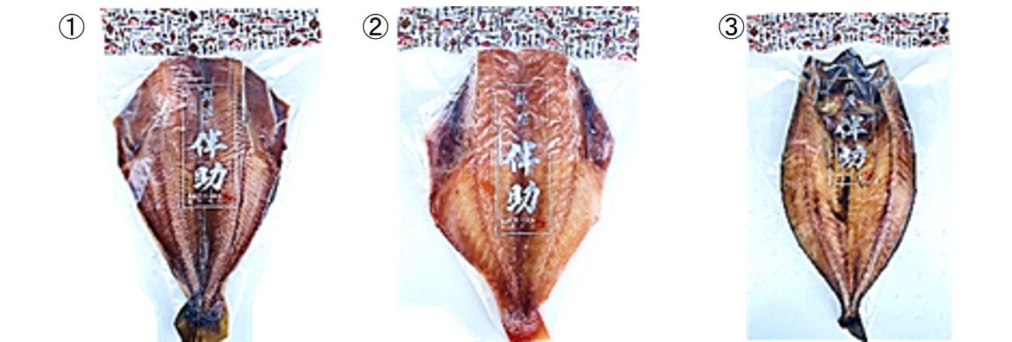 品名:① 縞ほっけ開き干し ② 赤魚開き干し ③さば開き干し