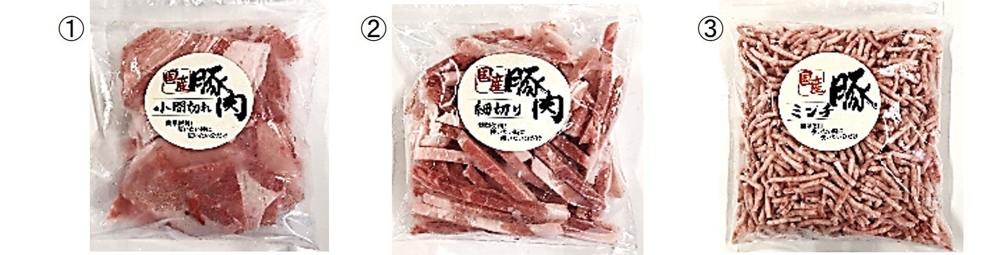 品名:①国産豚肉小間切れ 200g ②国産豚肉細切り 200g ③国産豚ミンチ 200g