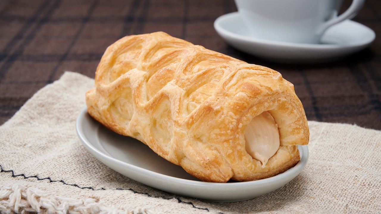 サクサクとしたコロネ形状のパイに、ほろ苦いコーヒーの味わいが感じられるカフェオレ風味のクリームを入れました。