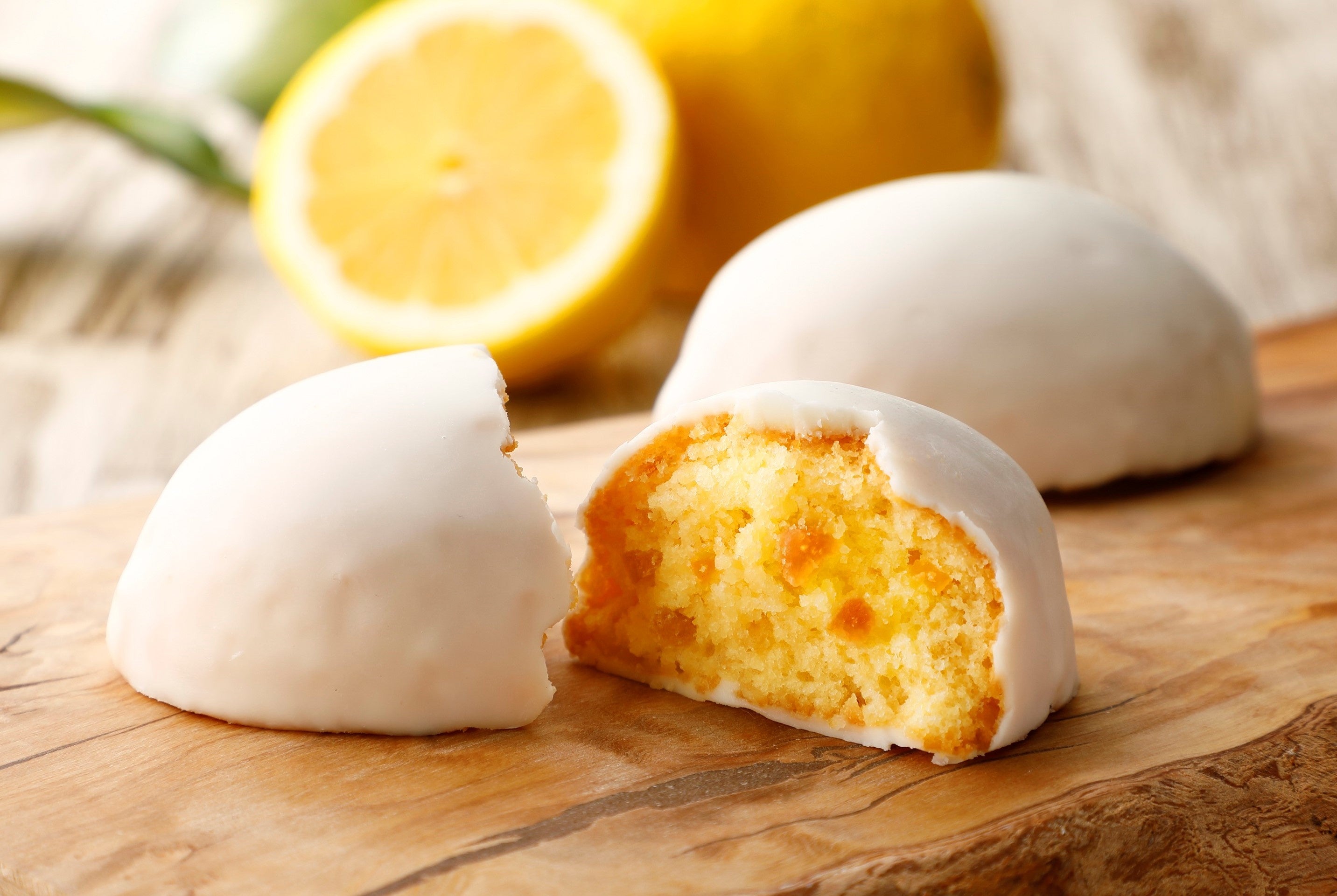 レモンピール、蜂蜜を加え、しっとりと焼き上げた生地をレモン風味のホワイトチョコレートでコーティングいたしました。爽やかな香りと、甘さを抑えたレモンの風味をお楽しみいただける、かわいらしいレモン型のレモンケーキです。