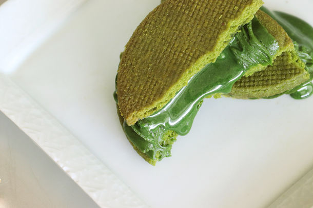 合計約14g(点てる抹茶7杯分相当)もの自家栽培抹茶を贅沢に使用した抹茶サンド。