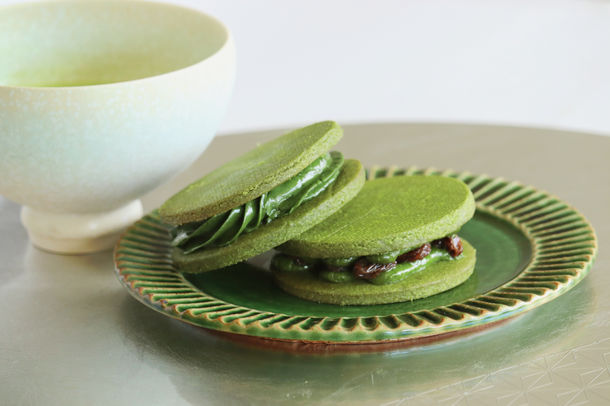 抹茶クッキー生地の抹茶含有量も非常に高いので、クッキー部分だけでもしっかりとした抹茶の風味を楽しめます。アーモンドの香り、バターのコクと合わさった抹茶の味わいは、実に風味豊かな仕上がりです。中のフィリングとさくさく食感のクッキー生地との対比も鮮やかなクッキーサンドです。